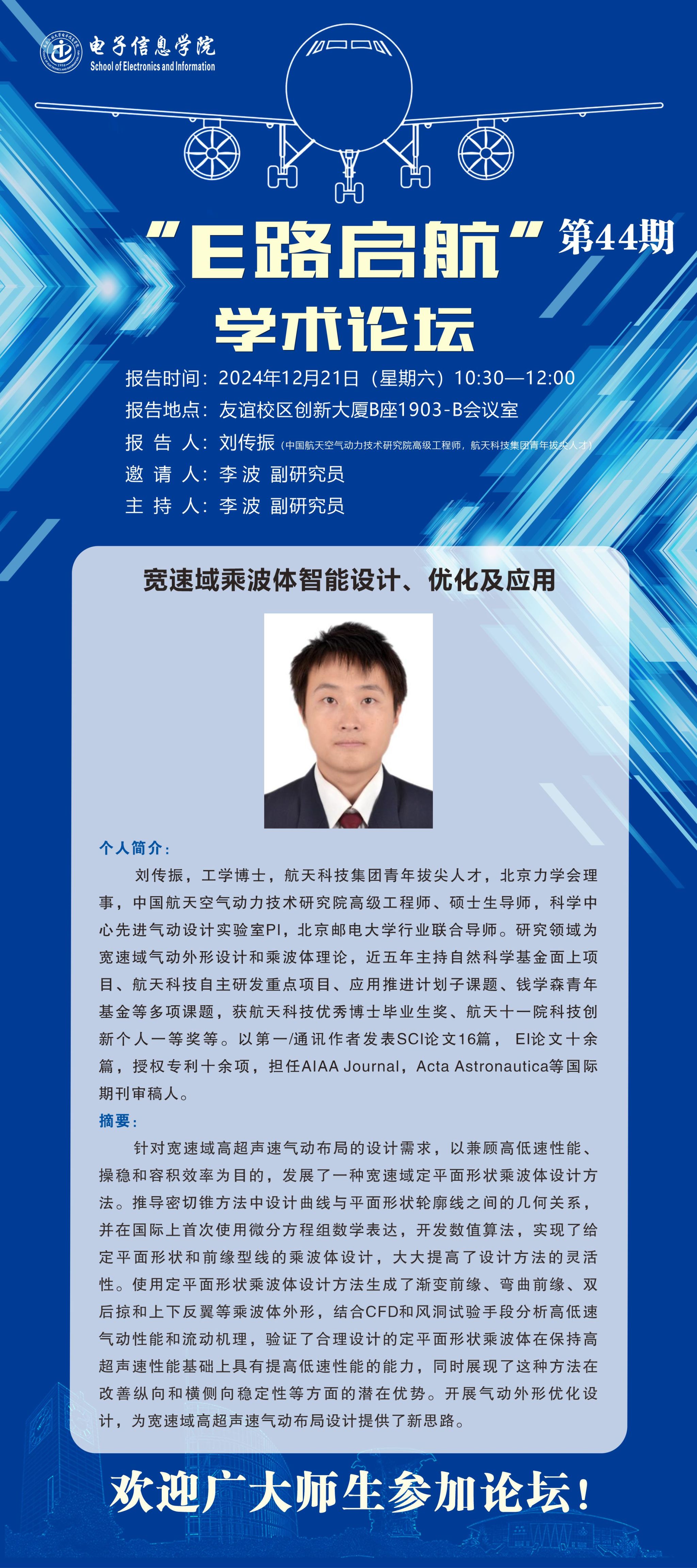 “E路启航”学术论坛第44期——宽速域乘波体智能设计、优化及应用