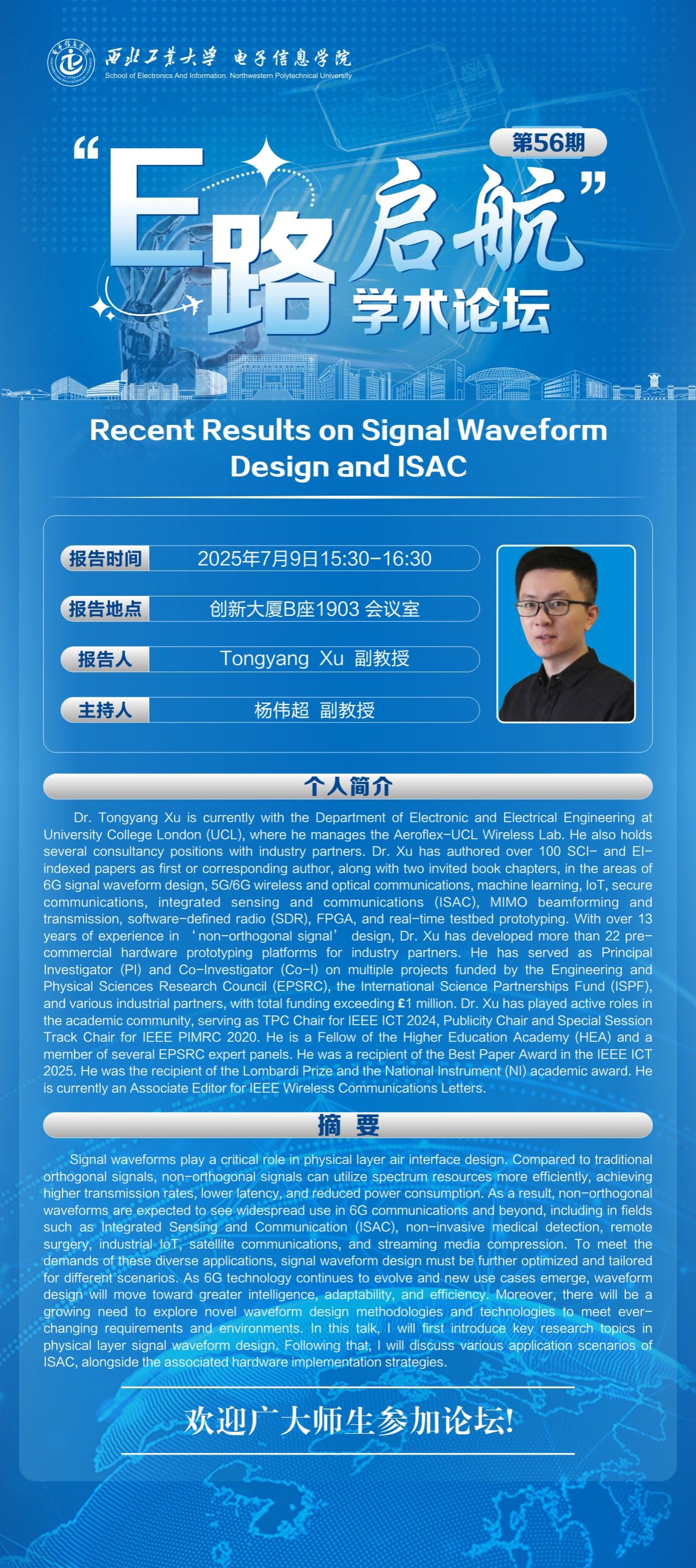 “E路启航”学术论坛第56期——Recent Results on Signal Waveform Design and ISAC
