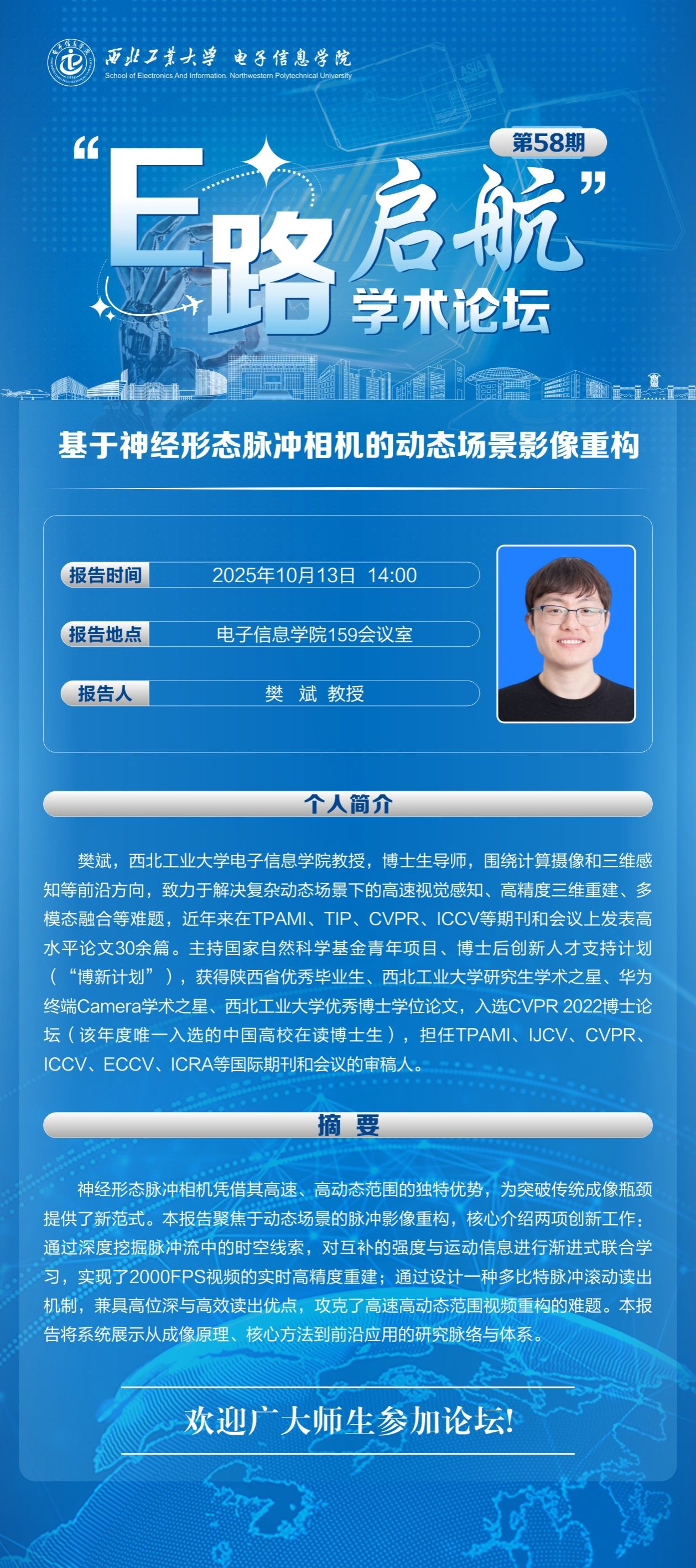 “E路启航”学术论坛第58期——基于神经形态脉冲相机的动态场景影像重构