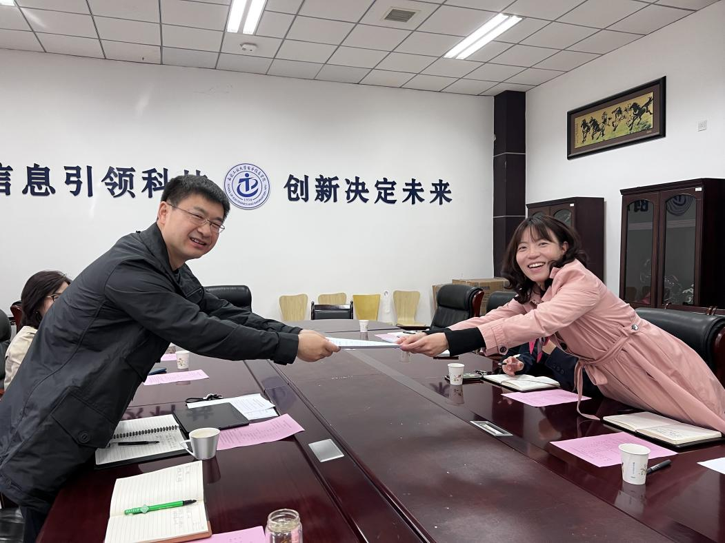 高永胜向学校对学院发展的大力支持表示感谢,表示学院将加速推进改革项目的实施,加强专项资金管理,把每一笔钱都用在刀刃上,做好一流人才培养改革和信息类公共教学平台的建设工作,推动学校“双一流”建设。