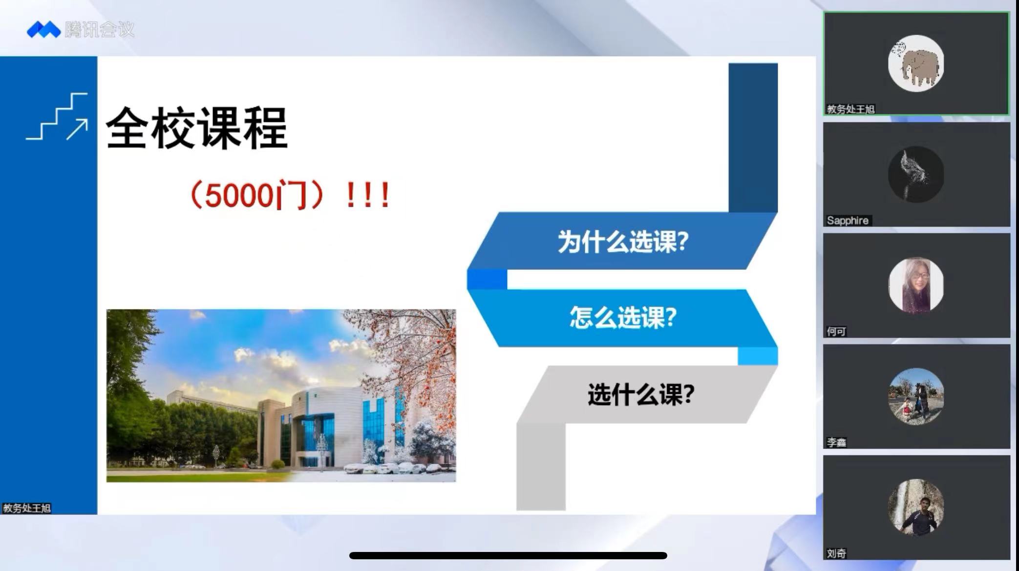 会议开始,教务处王旭老师分别从为什么选课、怎么选课、选什么课三个方面,为2022级同学详细介绍了选课的依据、选课流程及如何合理安排课程,并强调了选课中的注意事项。