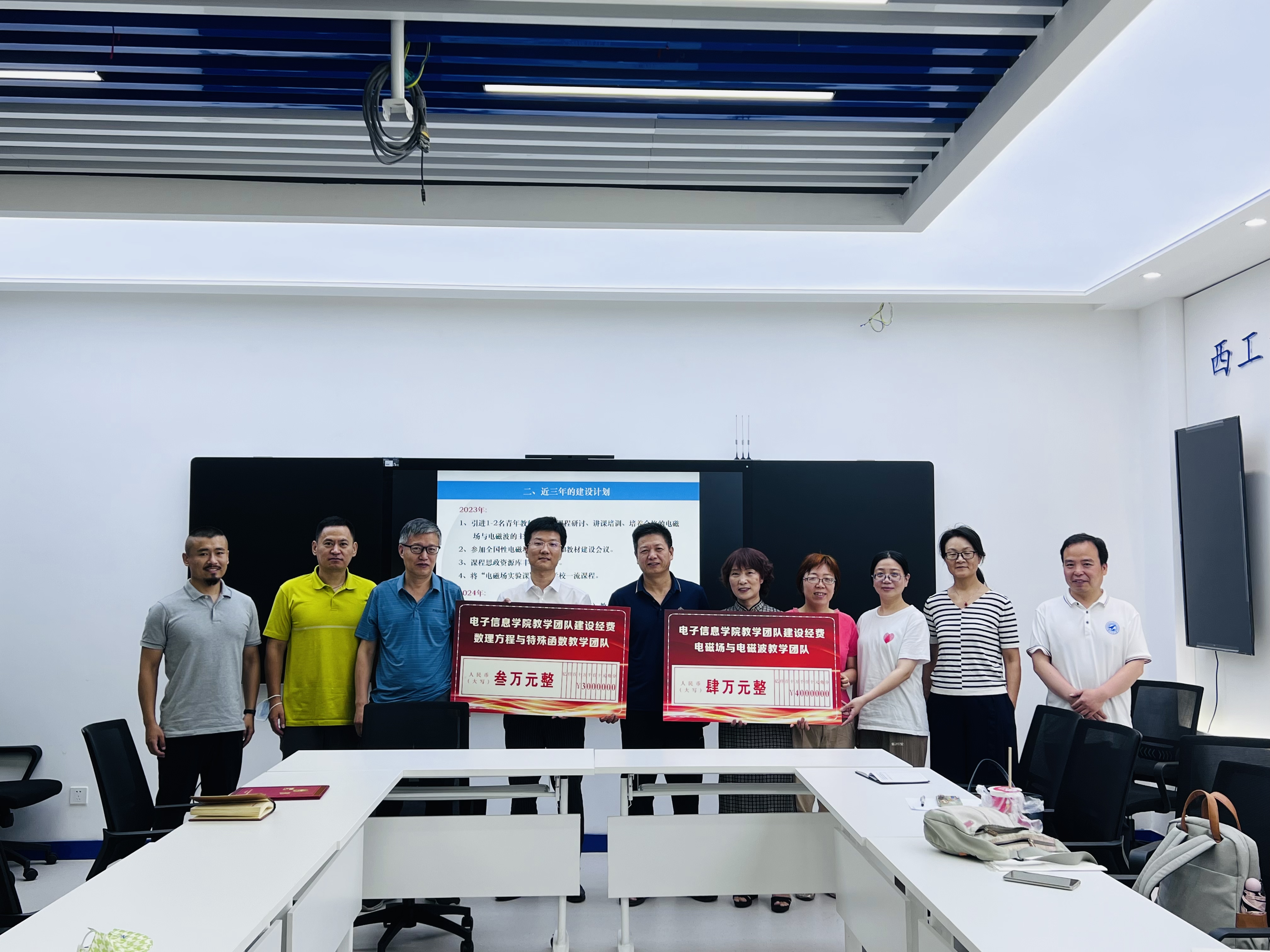教学团队建设与管理办法》,在团队内进一步明确了教学团队成立的目的、团队组成、团队目标与职责、绩效与经费支持等多方面的内容。各团队负责人汇报了团队建设现状、团队建设规划及年度建设目标。团队成员在会上进行了深入的讨论,发表了各自对于团队建设和个人发展的思考,针对团队后续工作如何有效落实、团队如何高质量发展等问题提供了诸多切实可行的意见和建议。侯俊为各个团队颁发了团队建设经费,表示学院高度重视教学工作,会坚持对教学团队建设的支持和投入,希望各个教学团队明确团队目标、统一思想,凝聚集体的力量与智慧,改革教学方法、方式,加强团队教师队伍建设,落实落细各项建设举措,打造一流的教学团队和课程,实现团队和个人共赢,提高学院的教学质量和人才培养水平。