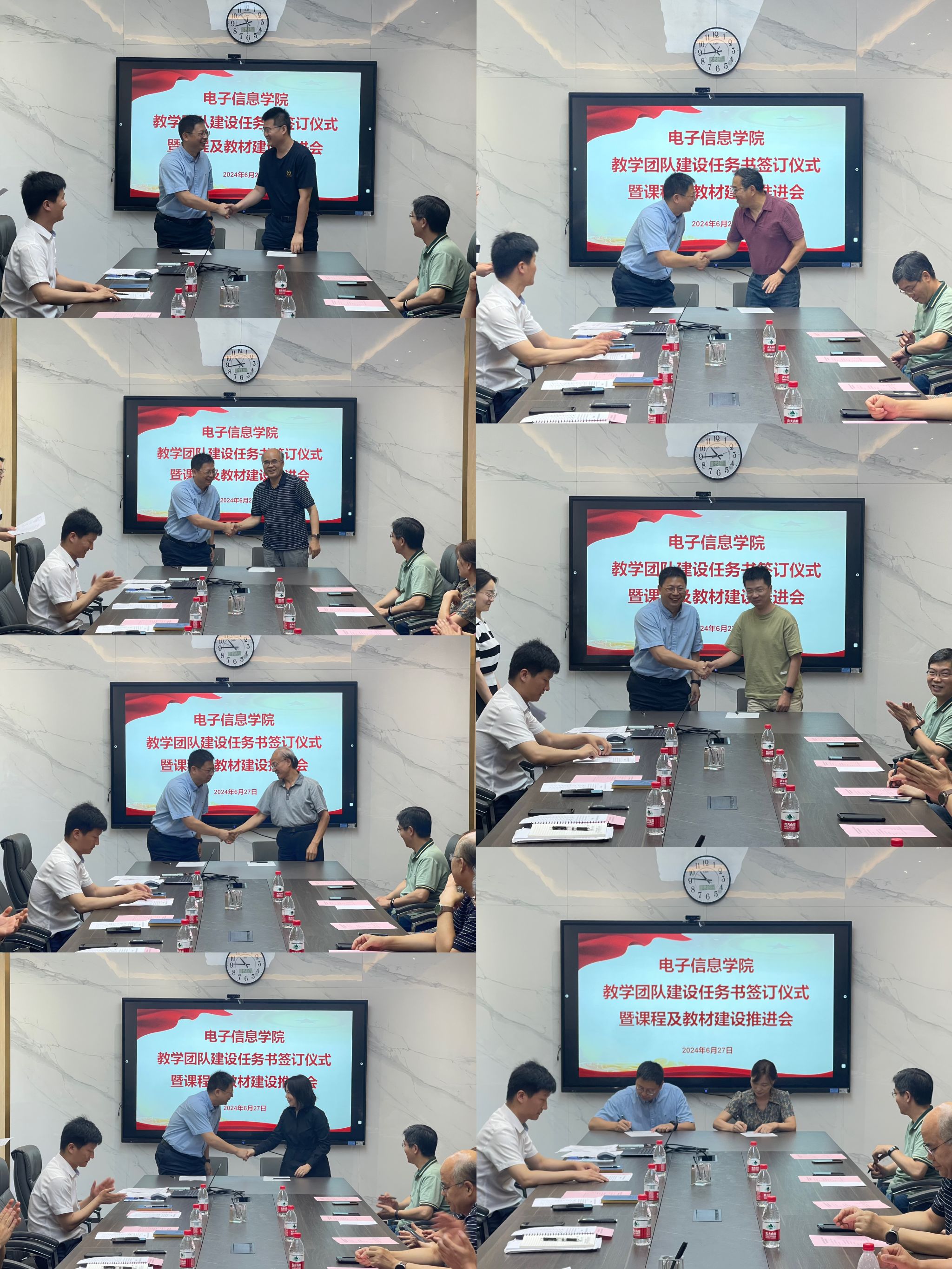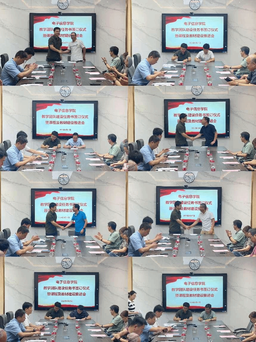 2024年度本科教学团队建设支持计划,明确了各教学团队2024年度的目标任务,并代表学院与电路基础等7个基础课程教学团队签订任务书。侯俊代表学院与集成电路等11个专业课程群教学团队签订任务书。