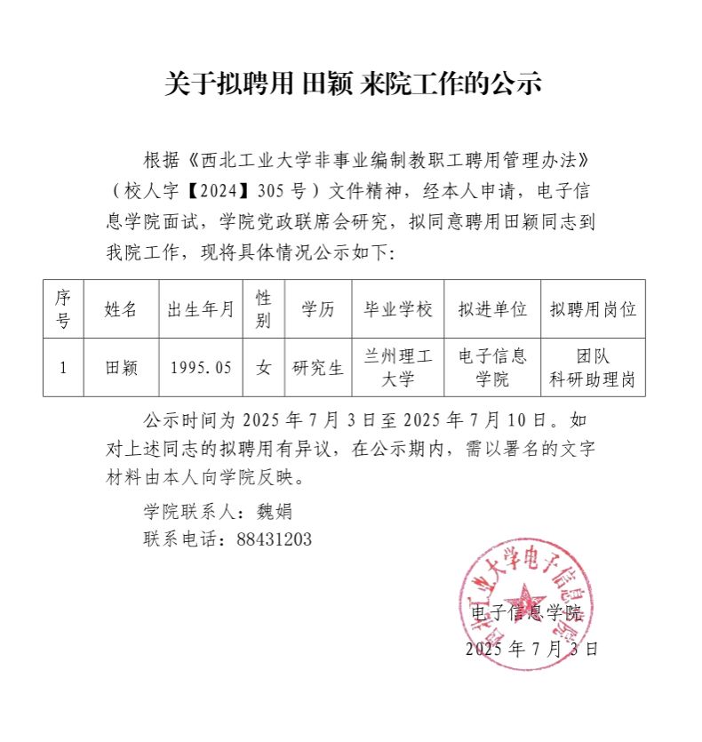 关于拟聘用尹含玉等 4 位非事业编制教职工来院工作的公示