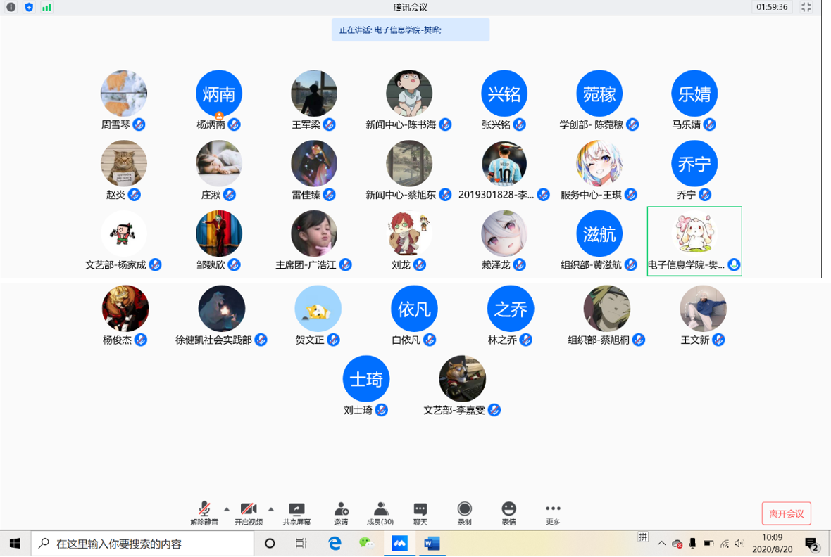 为更好的开展学生会的各项工作,满足学院改革发展的需要,sm调教 团委学生会本着自我教育、自我管理、自我服务的原则,于820日召开2020-2021学年部门改革讨论与工作安排线上会议,讨论了新学年各部门工作规划与发展构想并提出了创新性意见与建议,力争在新学年做到以正确的方向引导人,以健全的制度塑造人,以丰富的活动锻炼人,以优质的工作服务人。参会人员包括sm调教 团委书记樊晔、团委副书记刘畅、学生会主席杨炳南、服务中心主任贺文正、学生会副主席广浩江、赵炎,团委学生会各部部长干部。