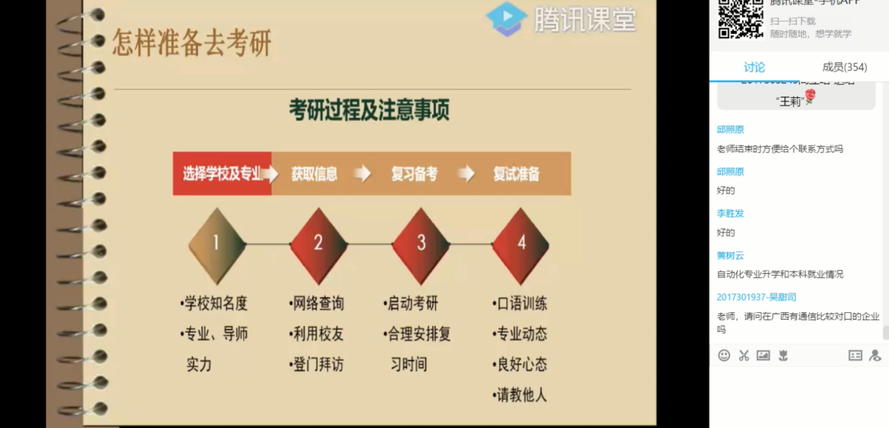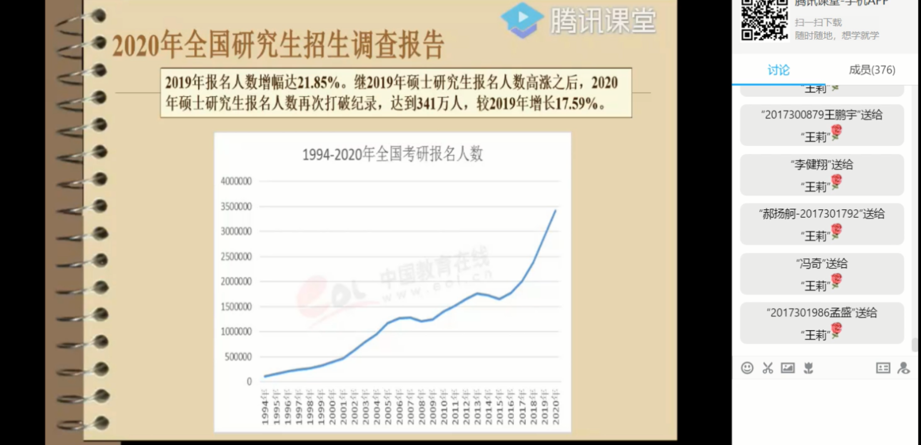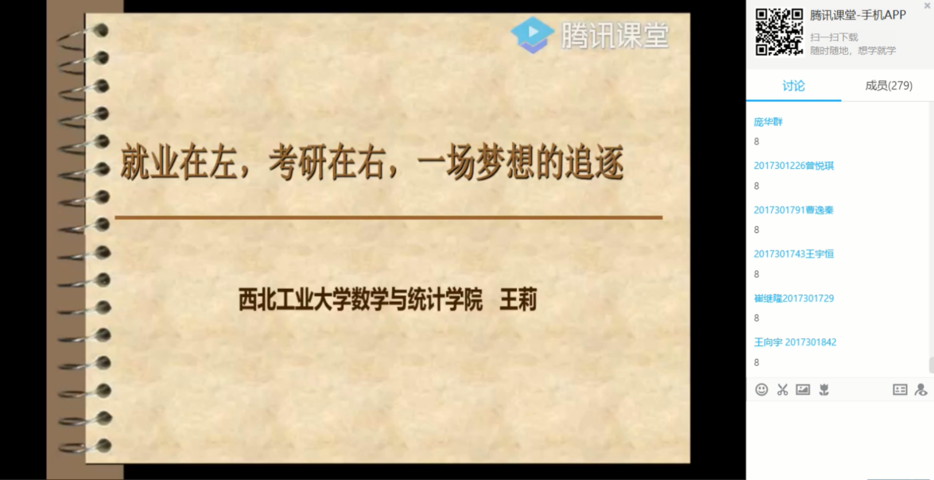 为了帮助2021届的同学们利用暑期积极调整,充分备战9月招聘黄金季。202081日晚7点,由学生职业发展指导服务中心主办,sm调教 承办的第88期“莉莉老师聊就业”在腾讯课堂成功举办。活动邀请了深受工大学子喜爱的王莉老师为2017级本科生做了题为《就业在左,考研在右,一场梦想的追逐》的学业生涯专题辅导讲座。共有380余名同学聆听了王莉老师的精彩讲座。