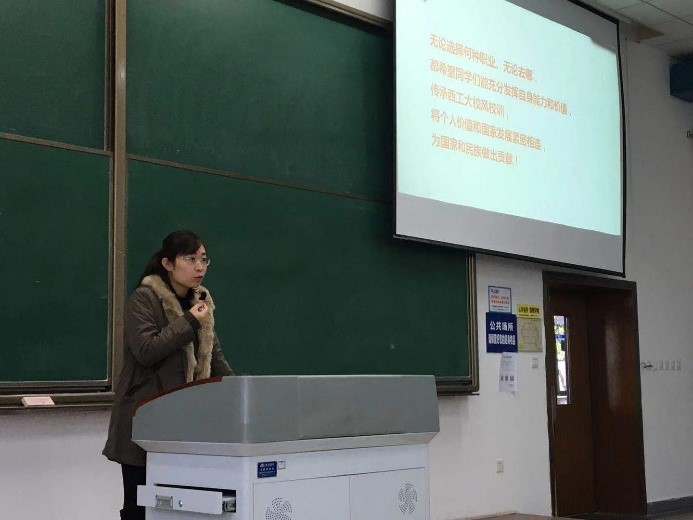 宗书记以一个 “师姐”的身份,分享了毕业后的工作感悟,穿插了许多生动、真实的校友发展故事,对2018级研究生未来面临的就业选择进行了指引。她勉励同学们一要认清自己,实现准确的自我定位,明确自己的主战场;二要努力提升自己的软实力和硬实力,提升就业竞争力,不仅仅要做到“脚踏实地”,还要记住“抬头望天”。最后,在就业选择方面,一定要拓宽就业的思路,多方面获取就业信息,入主战场、上大舞台、做大贡献!