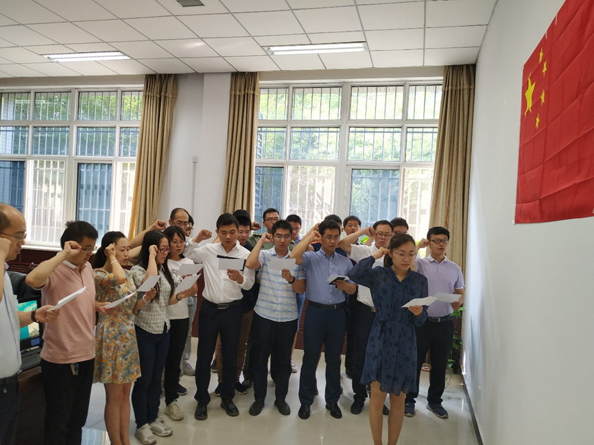 李春林书记首先向大家介绍此次活动的目的和意义,并再次重申了教育部及学校在加强师风师德建设方面的重要要求,号召大家以“四有”好老师的标准严格要求自己,立德树人,爱岗敬业,专注人才培养,潜心科学研究。接着,由宗凡副书记领誓,全体青年教师面对国旗庄严宣誓。全体青年教师神情肃穆,语气铿锵,流露出对教书育人工作的无限憧憬与热爱。