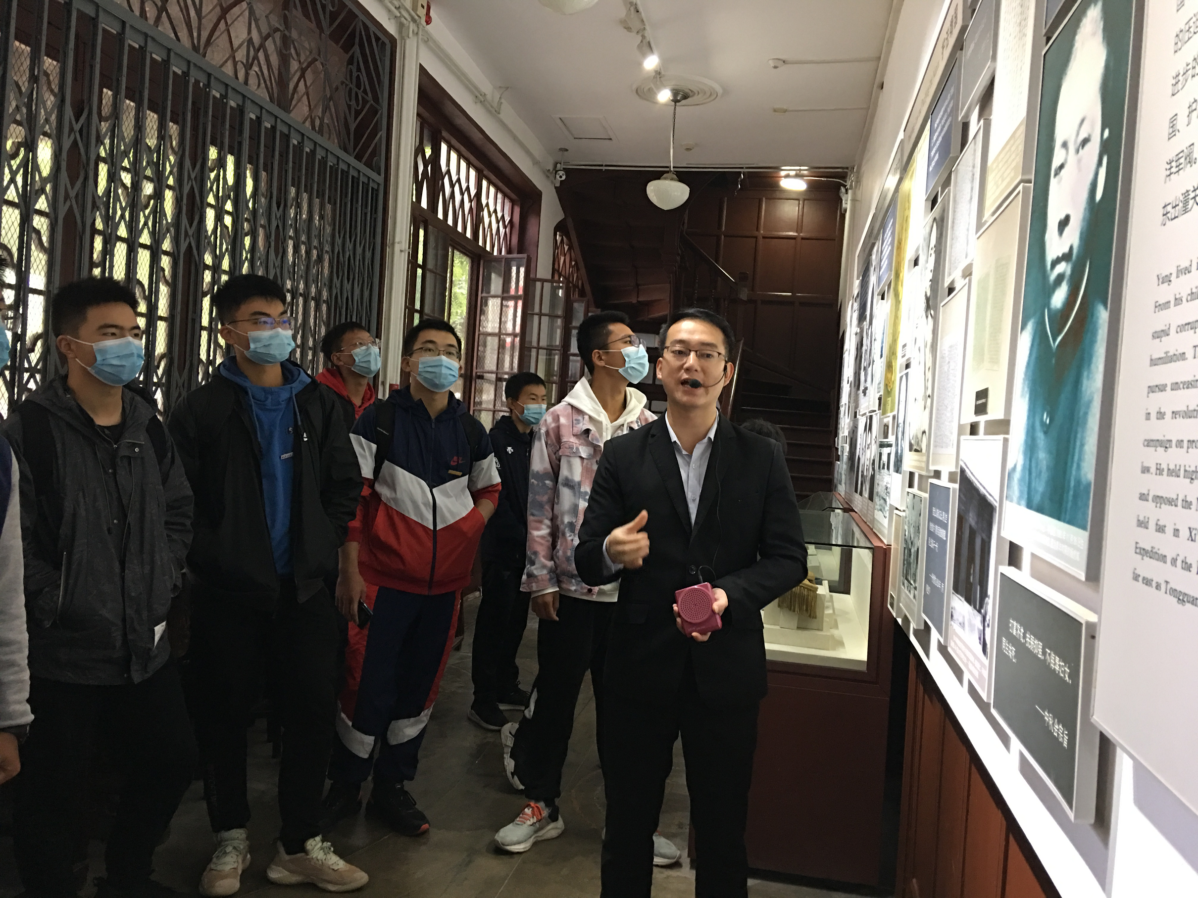 首先,早上八点师生们怀着激动的心情坐大巴从学校出发,一路上他们同唱《我和我的祖国》,在歌声中点燃爱国之心,也为这次红色教学拉开帷幕。到了杨虎城止园别墅已是945,参观途中,每个人都聚精会神地听讲解员的解说,时不时拍照、记笔记。从讲解中,同学们知道了中秋会、靖国军、西兰公路等等关于杨将军的丰功伟绩。其中令大家印象深刻的是“二虎守长安”的故事,西安城内的一万将士在粮食短缺的艰苦条件下,用顽强的意志与刘振华的十万军队殊死抗争,足足守了八个月。“怀沙秋子千秋烈,卫国捐躯一世豪”,杨将军为人民生,为人民死;以革命始,以革命终,他那崇高的爱国主义精神激励每一个人为祖国复兴而努力!