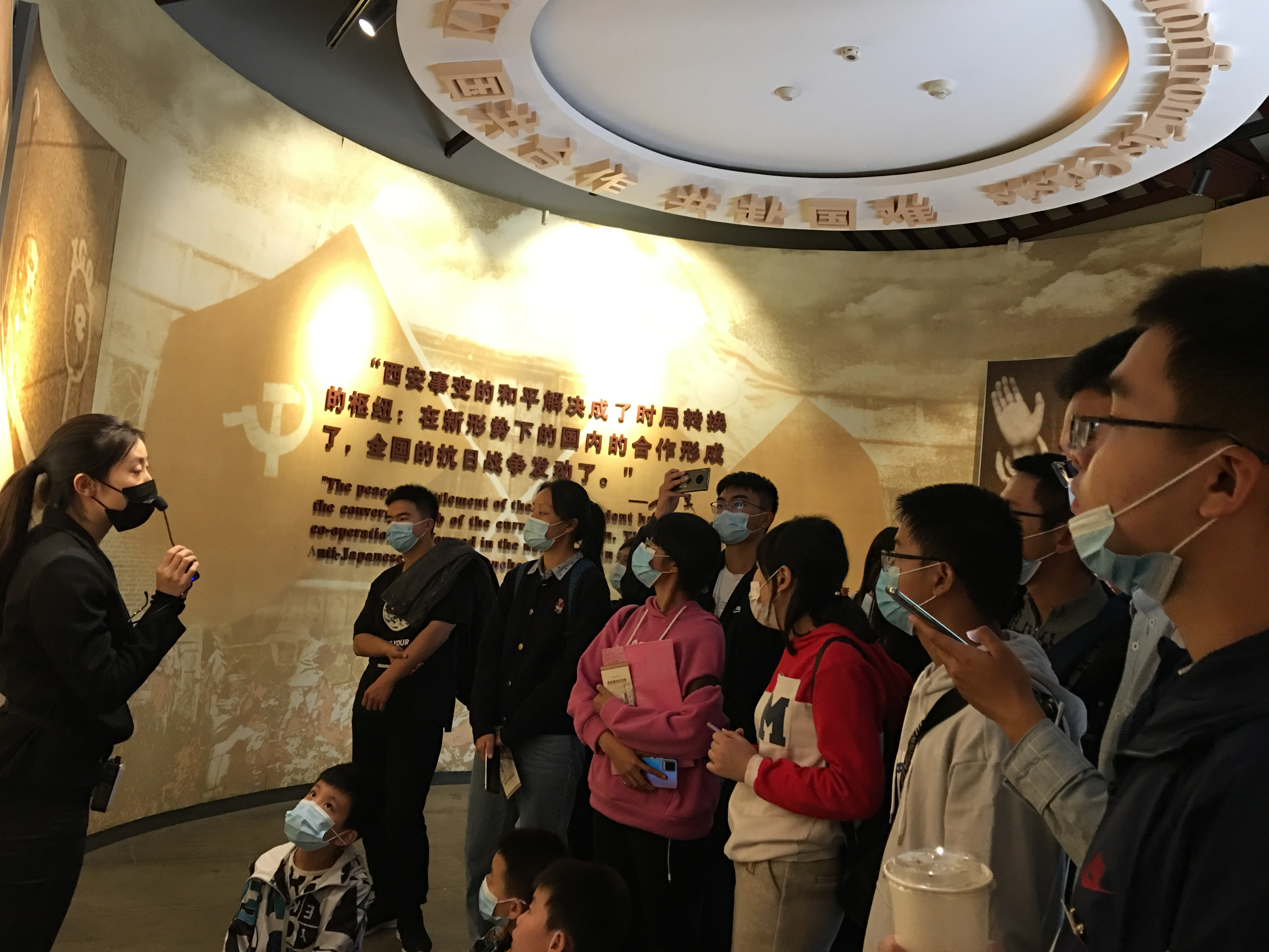 为弘扬延安精神、抗战精神等中国人弥足珍贵的精神财富,使我校新生更深刻体会、发展并传承中国精神,学校决定组织开展“”走初之路,点亮红色中国”红色现场教学活动。因此,在深秋十月,正值国庆节假的10月7日,追梦赤子心工大电信十班实践队赴西安事变以及八路军办事处这两个红色教育基地开展现场教学。此次活动由侯静老师带领十班的27名大一新生共同完成,通过情景体验式的现场教学,同学们不仅了解到丰富的红色文化,而且深刻体悟红色基因所蕴含的强烈使命感与社会责任心。