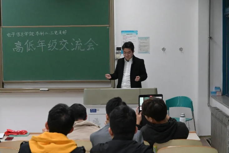 本科第二、三党支部于教西C312室联合举办高低年级学习交流会。针对学弟学妹们目前在大学学习、竞赛、生活等方面遇到的问题,会议邀请了王子翼、龙飞、鄂超然、范景辉和李环宇5位优秀学生现场进行答疑解惑并对为学弟学妹们未来的规划进行指导。