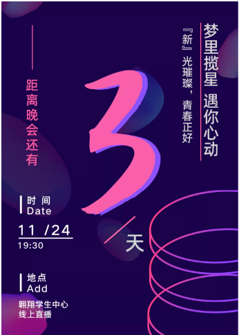 和管理学院联合主办的“梦里揽星,遇你心动”迎新晚会已经进入三天倒计时!期待已久的盛会,终于要和大家见面了!!!