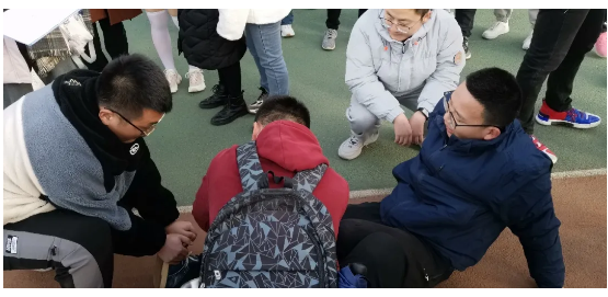 赛后,七班一名同学小腿抽筋,周围同学纷纷上前关心,在两名有运动经验同学的帮助下该生很快恢复了正常,三人在欢笑声中离开了操场。祝贺、欢呼、叹息、拥抱,这次活动将成为新生们一段难以忘却的回忆。
