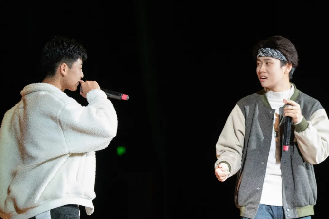 说唱《Slash》、舞蹈《Young Boss》、歌曲《挥着翅膀的女孩》、走秀《Private Party》,四大精彩节目接连袭来。表演者分别来自九弦音Rap队、Babypower街舞社、九弦音声乐队、九弦音T-show+Rap队。现场高潮迭至,没有人可以在此刻冷静。美丽、优雅、帅气、潇洒……似乎再多的赞美之词也无法还原出当时的精彩。小姐姐与小哥哥同台,轻柔起势与炫动展演共存,勾画出让人久久回味的心动图景。