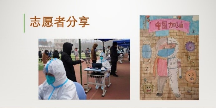大班会还邀请了本年级七名志愿者同学就本次疫情期间参与志愿服务的心得体会进行分享交流。黄滋航同学担任星E党员先锋队的队长,他向大家介绍了党员先锋队的人员组成和工作流程,展现了青年党员的责任担当与青春力量。蔡旭东、李陆、史磊和王旭辰等同学分别作为星天苑E座及云天苑B座的楼长代表,分享了他们的抗疫初心、工作职责以及所思、所想、所得。张流洋同学作为核酸检测志愿者和十四运旗阵方队志愿者,让同学们看到了逆行者们的努力与辛苦。兼职辅导员陈忍作为宿舍管理工作团队成员,在分享自己心得的同时,希望同学们能积极配合志愿者的工作,并且主动参与到志愿服务当中。