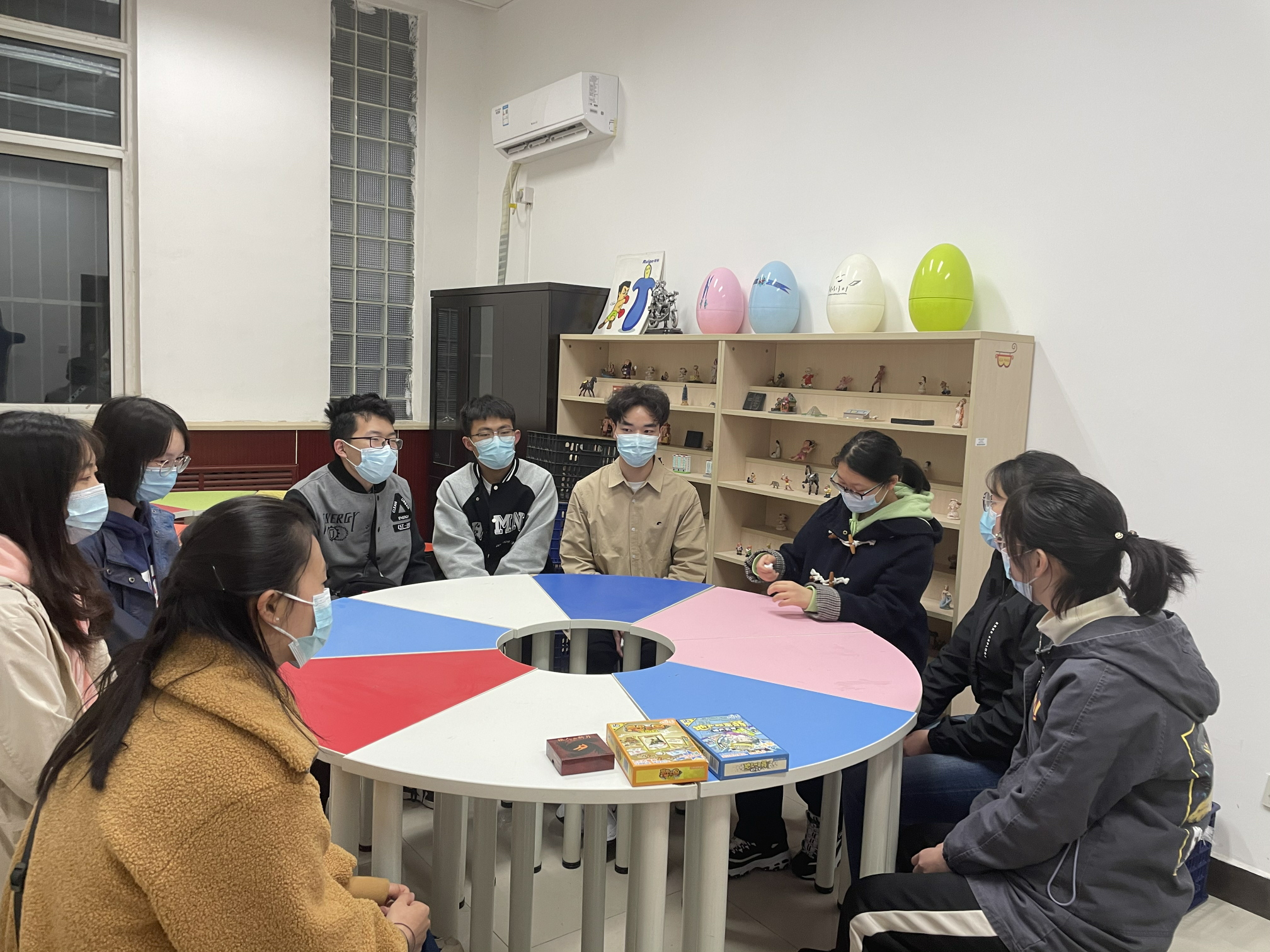 楼167心理健康教育活动室开展了一次轻松解压又“烧脑”的桌游——狼人杀。在游戏过程中,同学们互相交流、互相沟通、彼此认识,从游戏中体会交际、分辨真伪,在忙碌的学习工作和生活中得到短暂的放松。