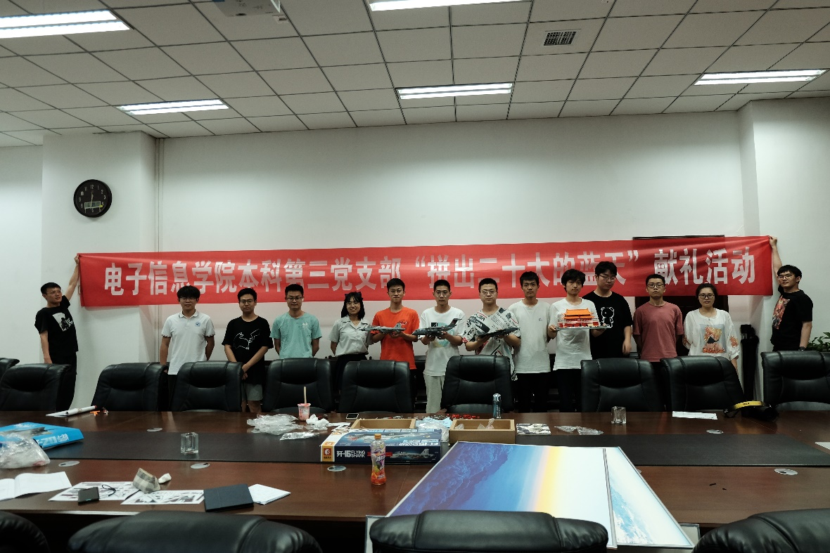 本科第三党支部举办了“拼出二十大的蓝天”献礼活动,从劳育的角度组织同学们使用积木拼出天安门和歼20、运20、歼15等国之重器,学习和继承西工大航空人“矢志追求、不懈奋斗”的优良精神。