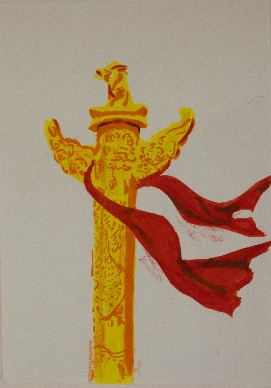 (支部党员于宸霄的绘画作品、吴艺博撰写的书法作品)