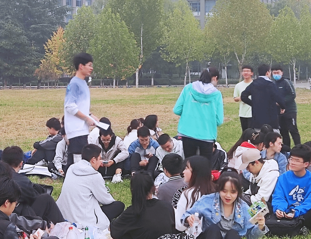 团委、学生会成员们的感情,提高凝聚力,更好地完成工作,在这个秋高气爽的金色的日子里,成员们在海天苑草坪上迎来了一个传统的破冰活动——新生见面会。