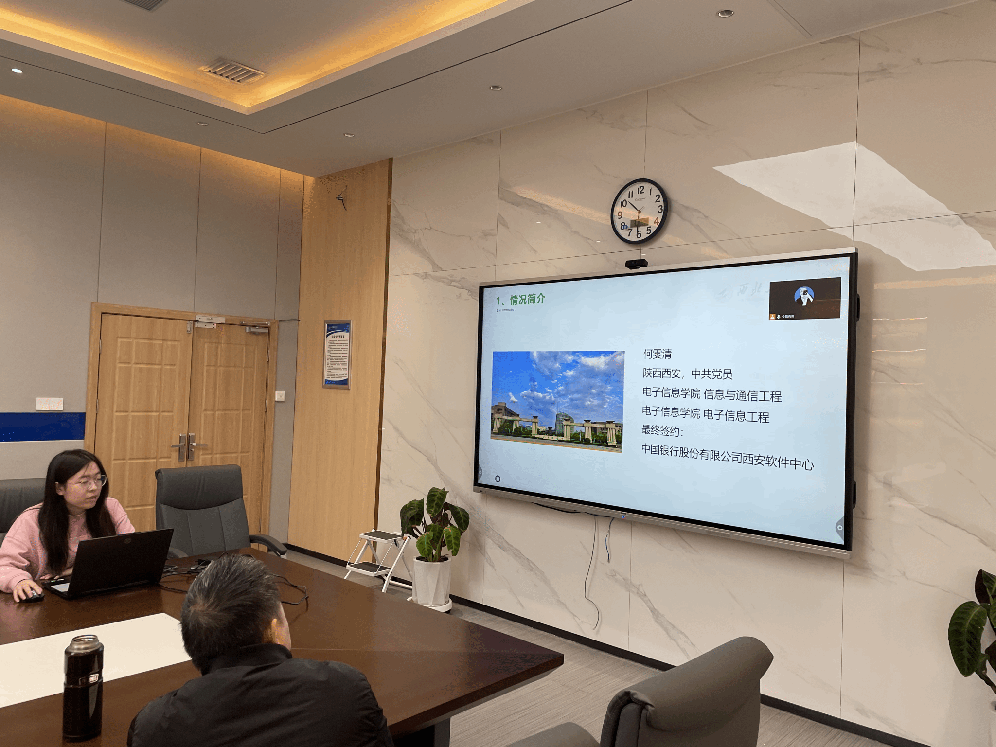 签约中国银行西安软件中心的何雯清同学主要从就业信息获取,求职时间安排和相关政策解读三方面进行了分享。她首先强调了学校就业信息网在就业信息获取方面的重要作用,建议大家一定要充分利用好该资源;其次,她建议大家要根据自己的目标制定好时间安排,把握每一次机会,每次面试后要总结,逐次提升改进;最后她结合自身经验,谈了对提前批、秋招和违约等相关政策的理解,建议大家要合理利用这些政策去争取更多的机会。