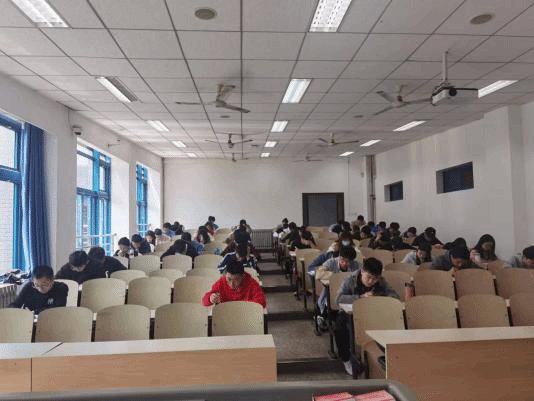 4月27日中午,发展对象培训班结业考试在教西B203和教西B210进行。本场考试采用闭卷笔试的形式,满分100分,考试时间90分钟。测试内容涵盖了党章、党史等相关知识。考试开始前,监考人员向全体考生强调考试注意事项,考生积极配合监考人员,自觉将手机、学习资料等物品交至讲台。考试过程中,考生严格遵守考场纪律,诚信应考,认真答题,考场秩序井然。