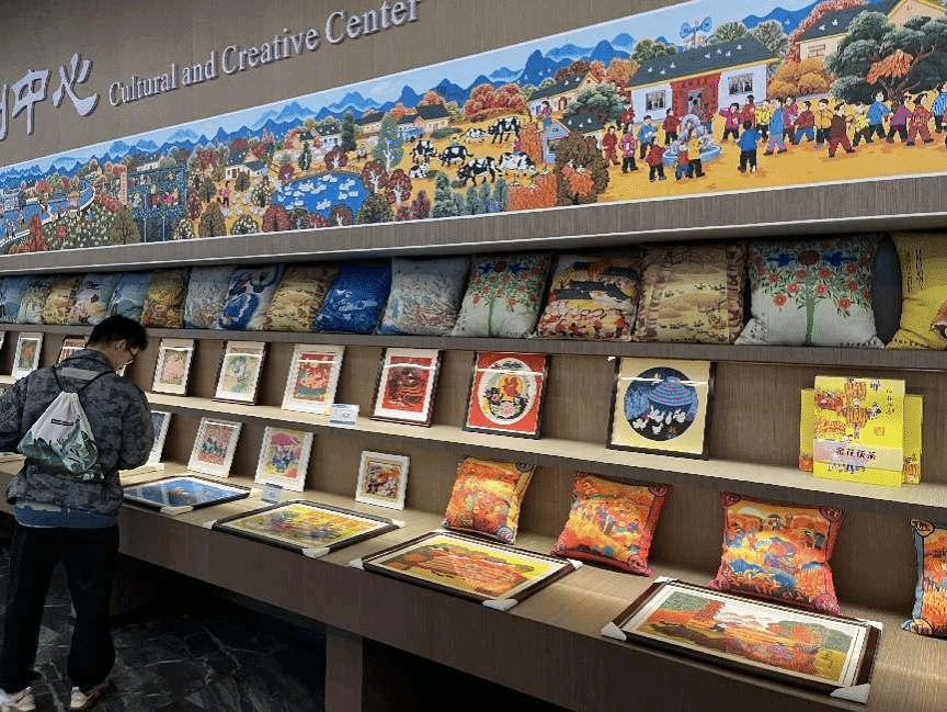 参观完博物馆,同学们还参观了雒志俭的工作室。一进门映入眼帘的是墙上挂的风格迥异的画作。有的是小巧可爱、线条简单的装饰画,有的是红底黑字,寓意吉祥的商品画,目不暇接。