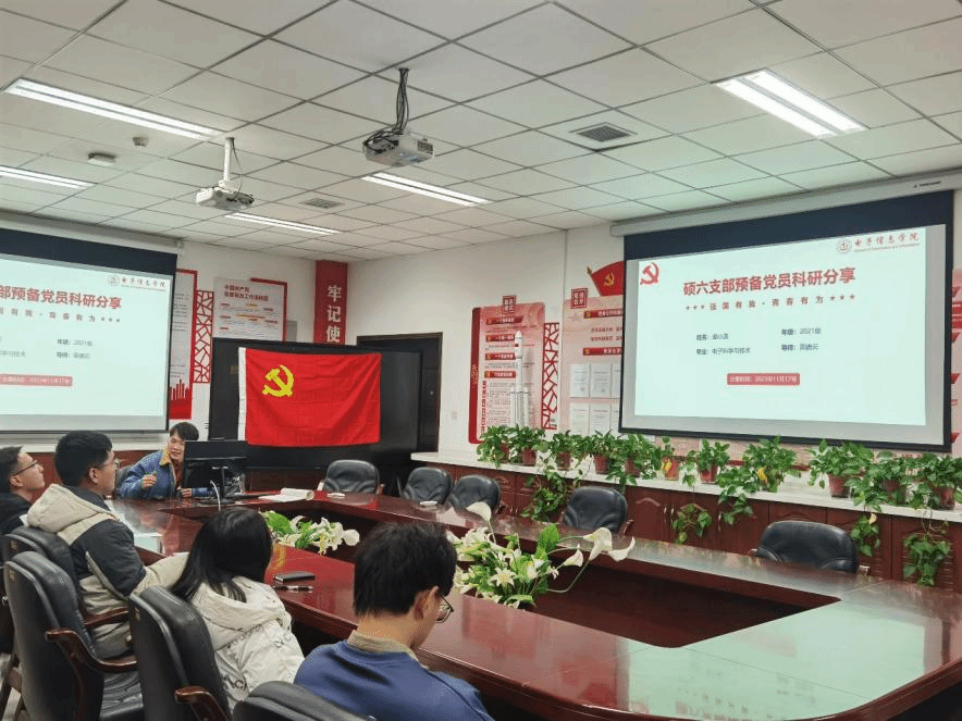 会议第二项,陈爽向大家介绍了本次作科研竞赛分享的三位支部成员,分别是王冠阳同志、庞小龙同志和王家臻同志。