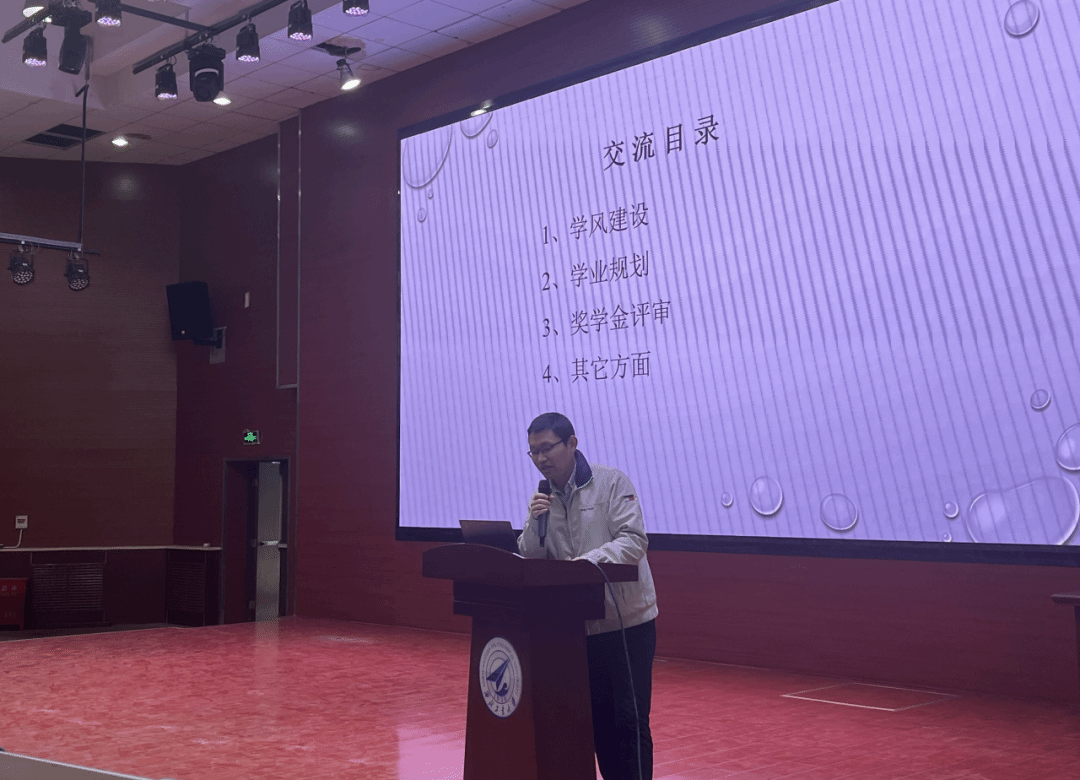 其次,辅导员刘向阳就奖学金评定、学业规划及学生日常管理等方面与同学们进行了交流。针对同学们第一次参加奖学金评定而对奖学金评定了解不够的问题,全面讲解了本学年奖学金评定的基本规则、评审流程、指标数量、最终结果,指出了本年级同学在部分奖项上的差距和存在的问题。针对当前同学们在学业规划、日常管理中出现的新情况,结合未来考研、出国等需求,详细讲解了当前的学业中应重点关注的具体事项,鼓励同学们从现在开始在做好规划和安排,同时针对部分同学在请销假、日常人际交往等方面存在的问题,提出对应的要求和解决方法。