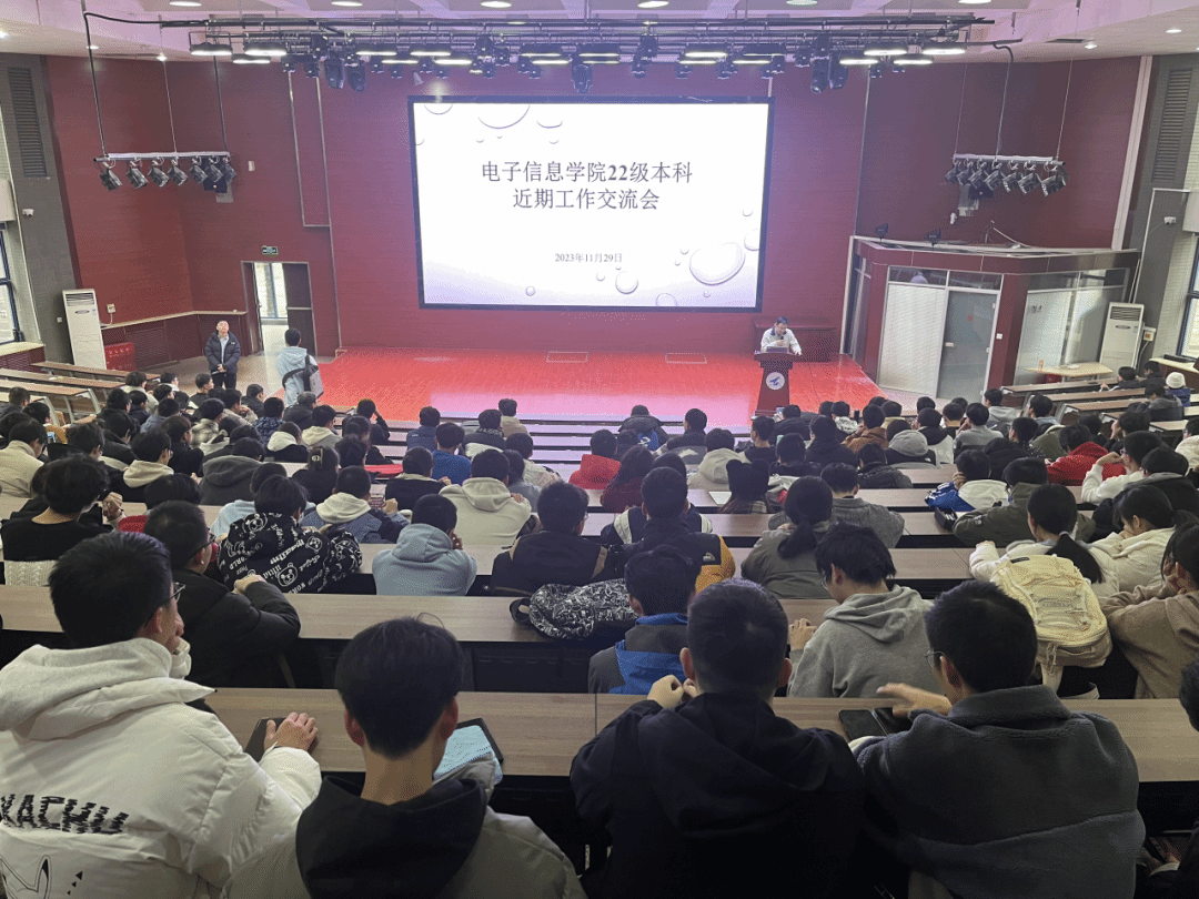 2022级本科年级在教学西楼D100召开了近期工作交流会议。