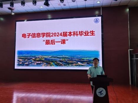 党委书记侯俊在教西D100为2024届本科毕业生讲授了题为“扬帆启航新时代·青春奋斗正当时”的“最后一课”。辅导员赵洪钢和全体2024届本科毕业生出席。活动由学院党委副书记高敏主持。