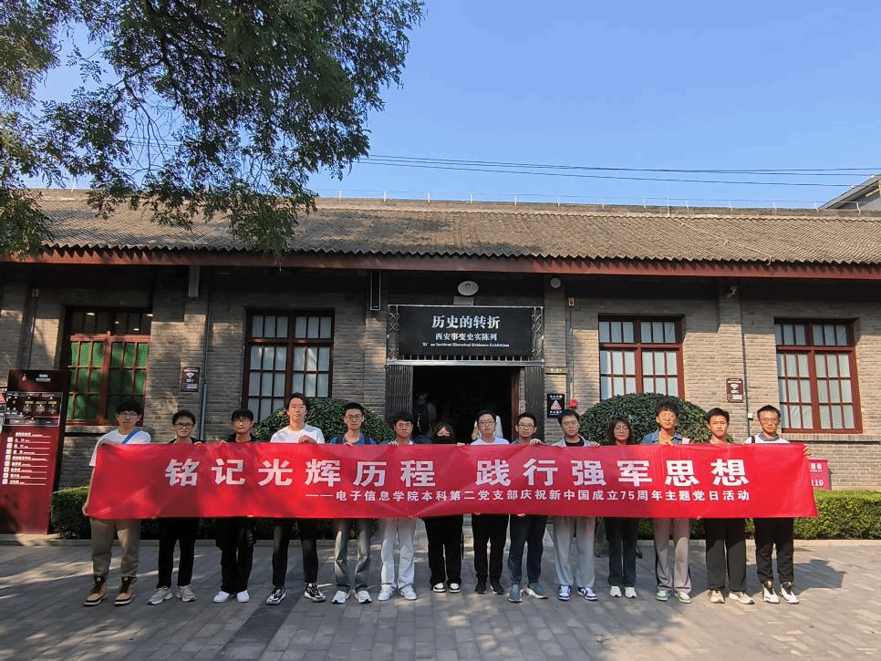 本科第二党支部组织支部党员、部分入党积极分子和发展对象前往西安事变纪念馆和八路军西安办事处纪念馆,开展主题为“铭记光辉历程 践行强军思想——庆祝新中国成立75周年”的实地研学活动。
