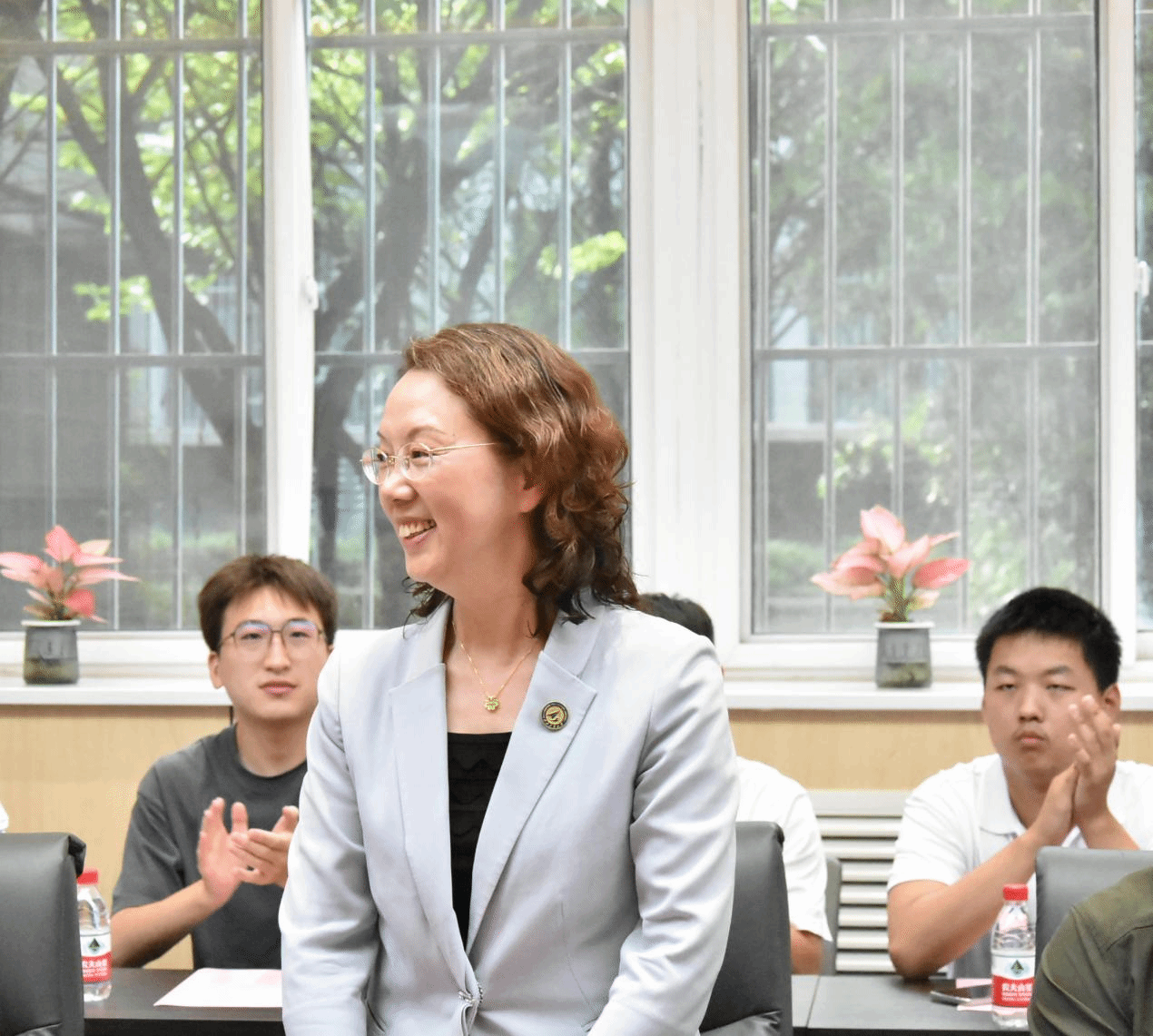侯俊首先向与会师生介绍了赵春玲的研究工作及相关履历,并代表学院对赵春玲回到学院表示热烈欢迎。