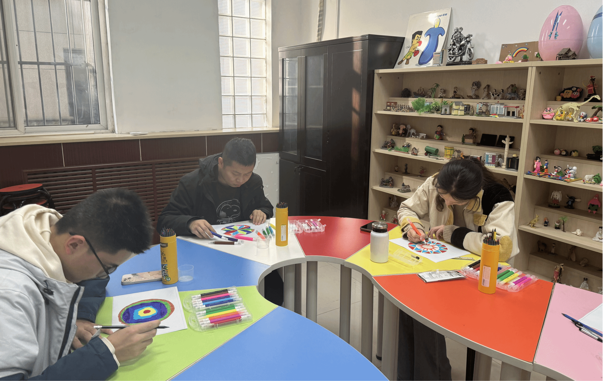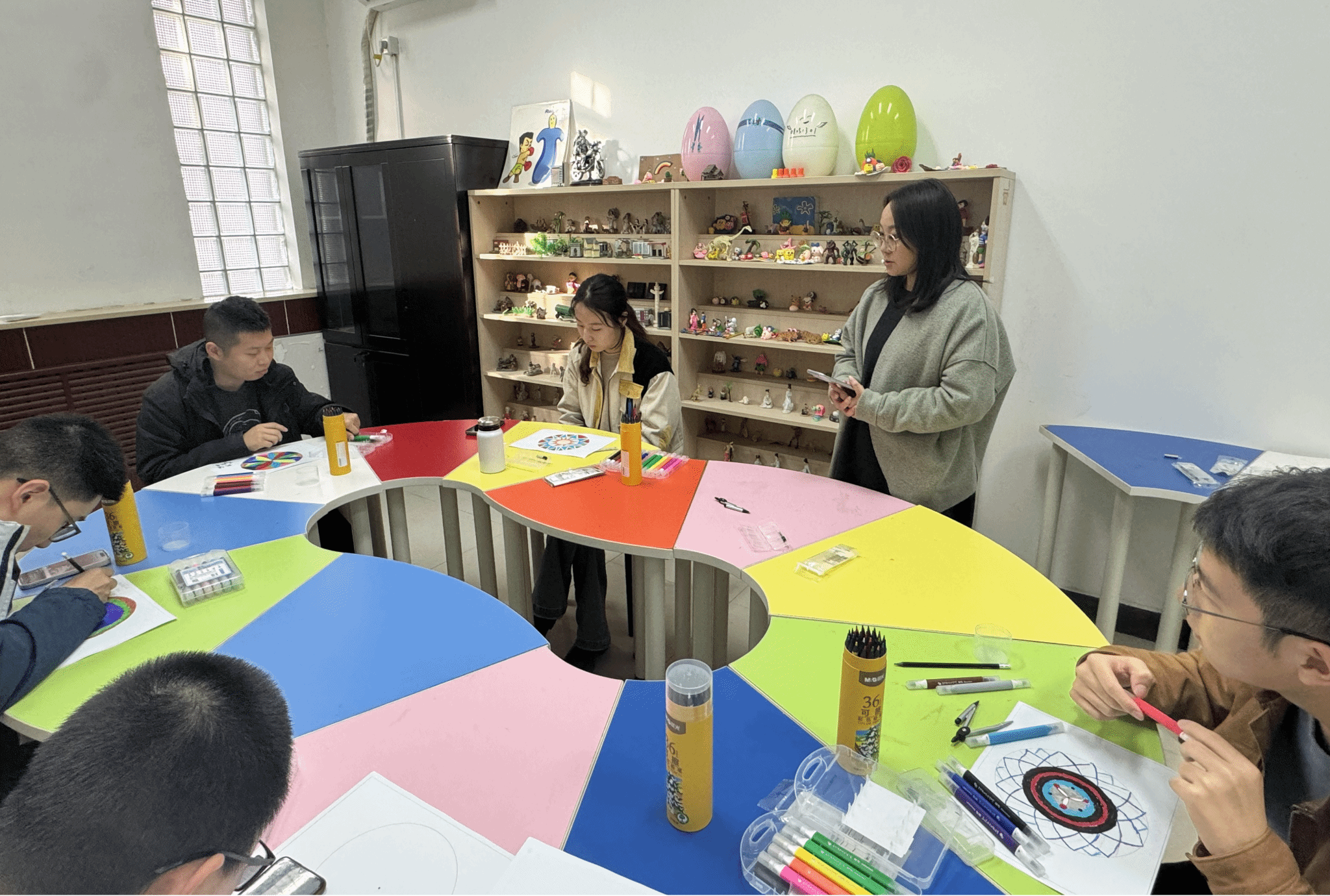 “知心阁”心理辅导站开展了一场别开生面的艺术疗愈团体心理辅导活动。本次活动由兼职心理咨询师王晶老师带领,旨在通过曼陀罗绘画的方式,减轻考研或期末阶段同学们的学习备考压力,释放紧张焦虑情绪,探索内心世界。