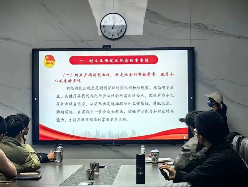 活动主讲人杨欣妍围绕树立正确就业观念的重要性、客观认识当前就业形势以及如何树立正确就业观三大核心内容,引导同学们传承红色基因,将个人的梦想追求与国家建设的伟大事业同频共振。