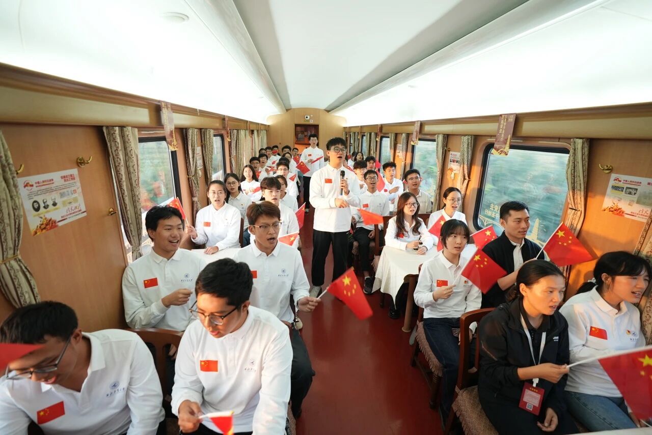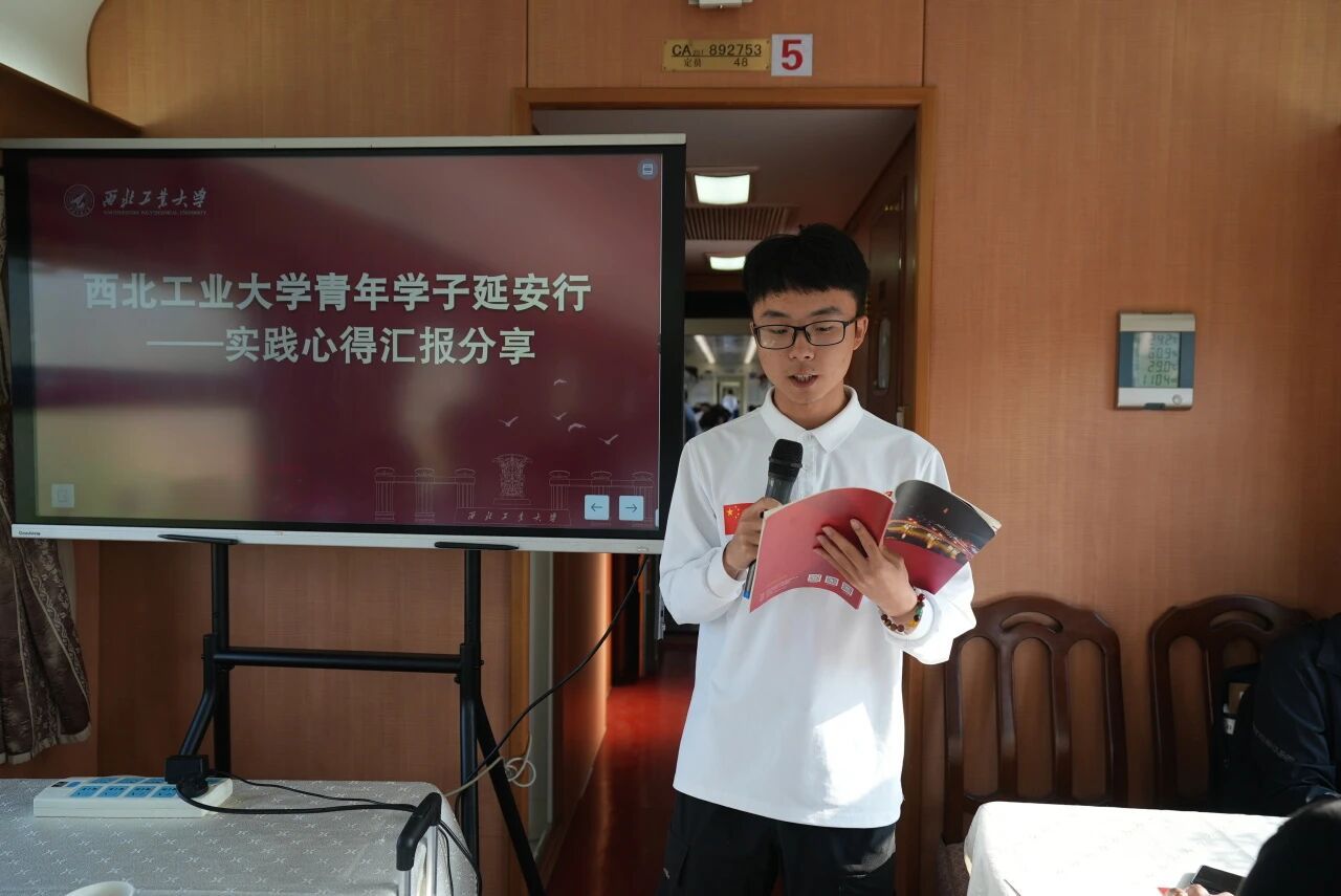 实践活动接近尾声,在返程途中,一场别开生面的“红色拉唱” 与 “红色诗词背诵” 活动热闹开展。大家分成小组,先后合唱了《国家》《歌唱祖国》等红色歌曲,背诵《七律・长征》《沁园春・雪》等红色诗词。车厢内歌声嘹亮、诗词朗朗,红色氛围十分浓厚。大家在互动中进一步加深了对红色文化的热爱,也为此次延安实践活动画上了圆满的句号。