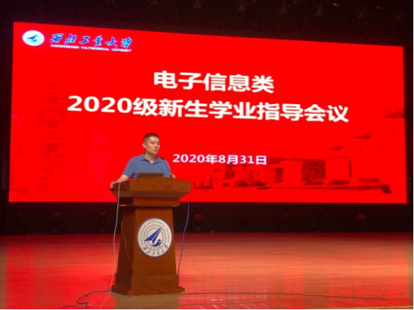 副院长周巍、微电子学院副院长王少熙和教务处姚尧老师在翱翔活动中心为2020级电子信息类的新生作学业指导宣讲会,2020级班主任也参加了此次宣讲会,会议由周巍副院长主持。