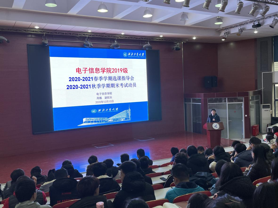 在长安校区针对2018级、2019级和2020级本科生分别召开了三场2020-2021春季学期选课指导宣讲会和和期末考试动员会。会议由周巍副院长主讲。