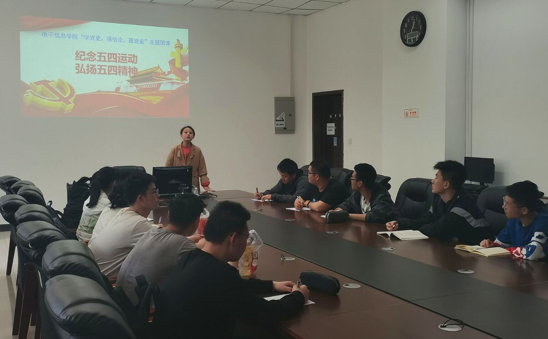 团委在学院楼119会议室开展了“纪念五四运动 弘扬五四精神”主题团课。院团委书记樊晔深入院DL062011团支部,与团员们分享了五四运动的精神。同学们反应热烈,感触颇深。