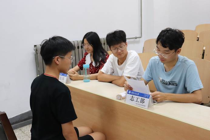 团委、学生会于9月10日、11日晚,在教西B205、206进行了现场面试。各部门负责人准备了具有针对性的考查问题,与新生展开面对面的交流,各部门面试工作有序进行。