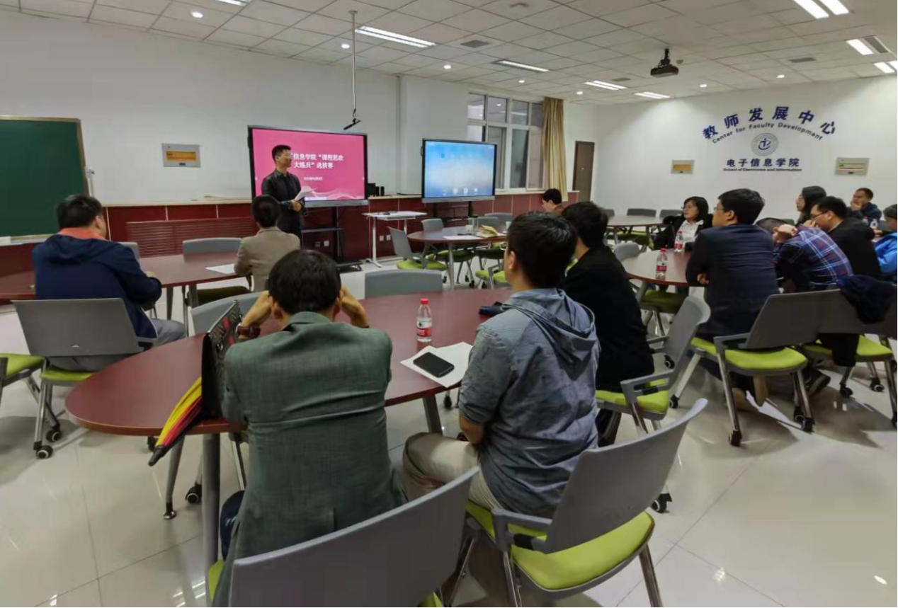 于10月8日下午举行了“课程思政大练兵”选拔赛。学院各系共推荐12位老师参加了比赛,我院资深教师张会生、丁君、尹熙鹏三位老师参加了评审,活动由学院副院长高永胜主持。