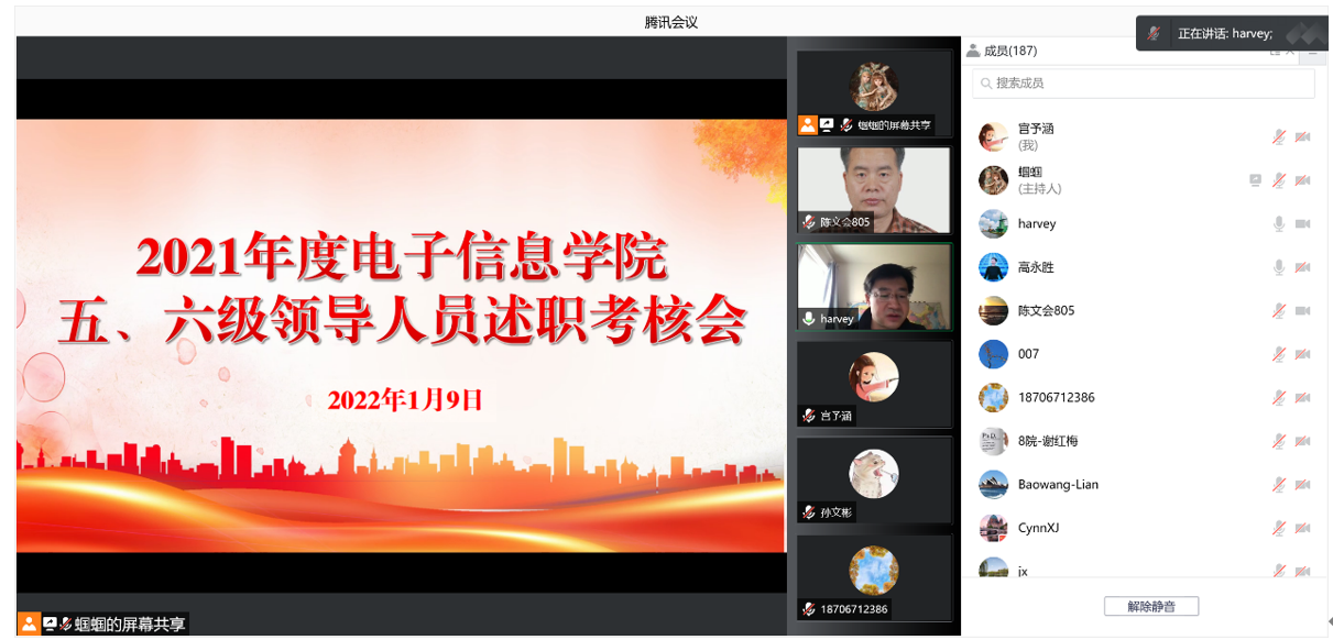 于1月9日召开了线上2021年度五、六级领导人员述职测评大会,院领导、全体教职工、学生代表参加了测评会。会议由党委书记侯俊主持。