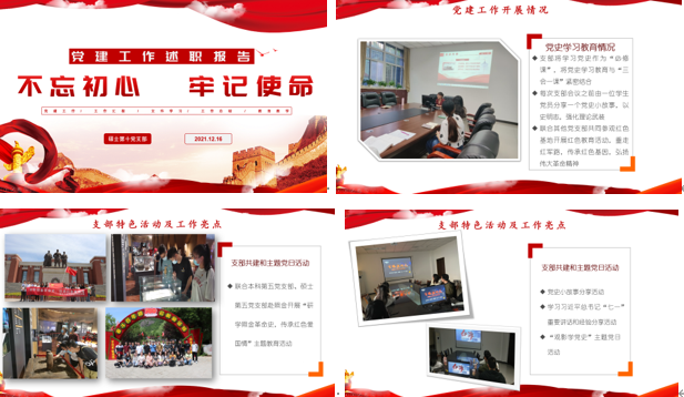 最后,侯俊对参会的各位评委老师和学生党支部书记表达感谢,对各位学生党支部书记在过去一年的工作表示充分肯定,也希望各党支部书记能够利用好这次互相学习、互相借鉴的机会梳理解决好支部目前存在的问题与不足,然后对大家即将在2022年的工作提出了三点要求:一是希望大家能够提高政治站位,加强理论学习,发挥好党员的先锋模范作用,带领党支部不断创优争先,争取“更上一层楼”;二是希望大家能够充分调动支部成员的主动性和积极性,将党建与科研学习紧密结合起来,以高质量的党建引领学风建设;三是希望大家能够充分结合自身所在支部的实际情况,不断创新支部开展活动的形式,提升党建工作质量。
