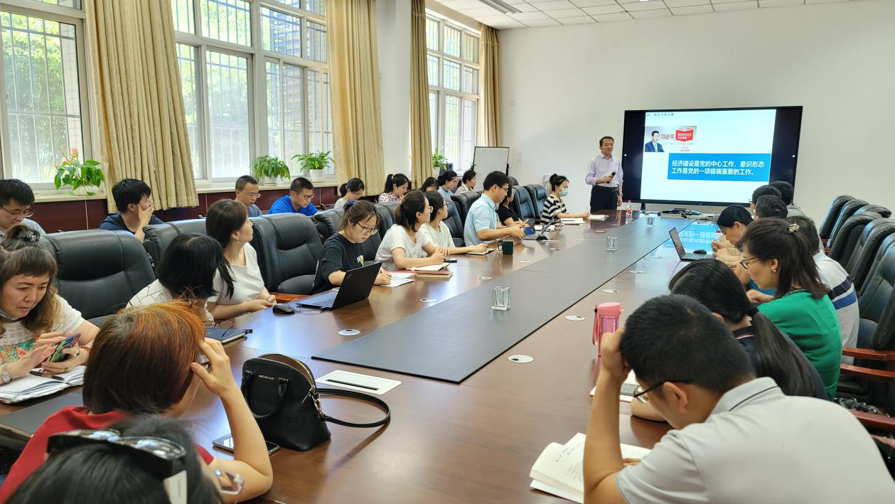 邀请陕西省政党治理与意识形态安全中心主任、学校马克思主义学院教授郝保权老师做题为《当前意识形态领域风险挑战和维护意识形态安全的应对之策》的专题培训活动,学院党委书记侯俊、院长王伶、各党支部书记、教师代表以及全体院办人员参加了此次培训活动,活动由侯俊主持。