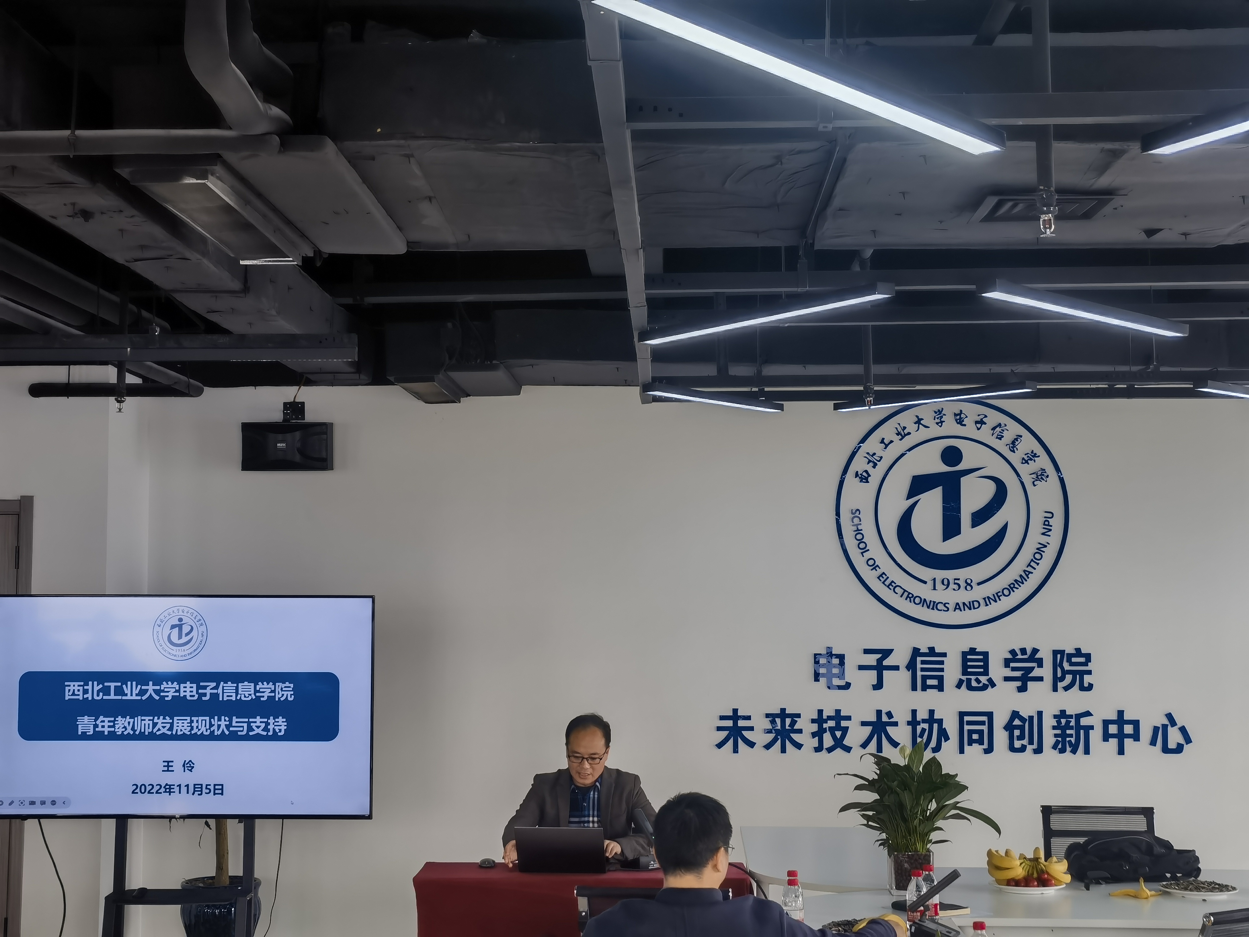 张洵颖详细介绍了“未来技术协同创新中心”建设情况,强调本中心将有力加强对外协作、跨团队协同,打破校区间的物理空间局限,将极大地满足协作化需求,同时就后续工作展开做了介绍,对青年教师提出期待与展望。