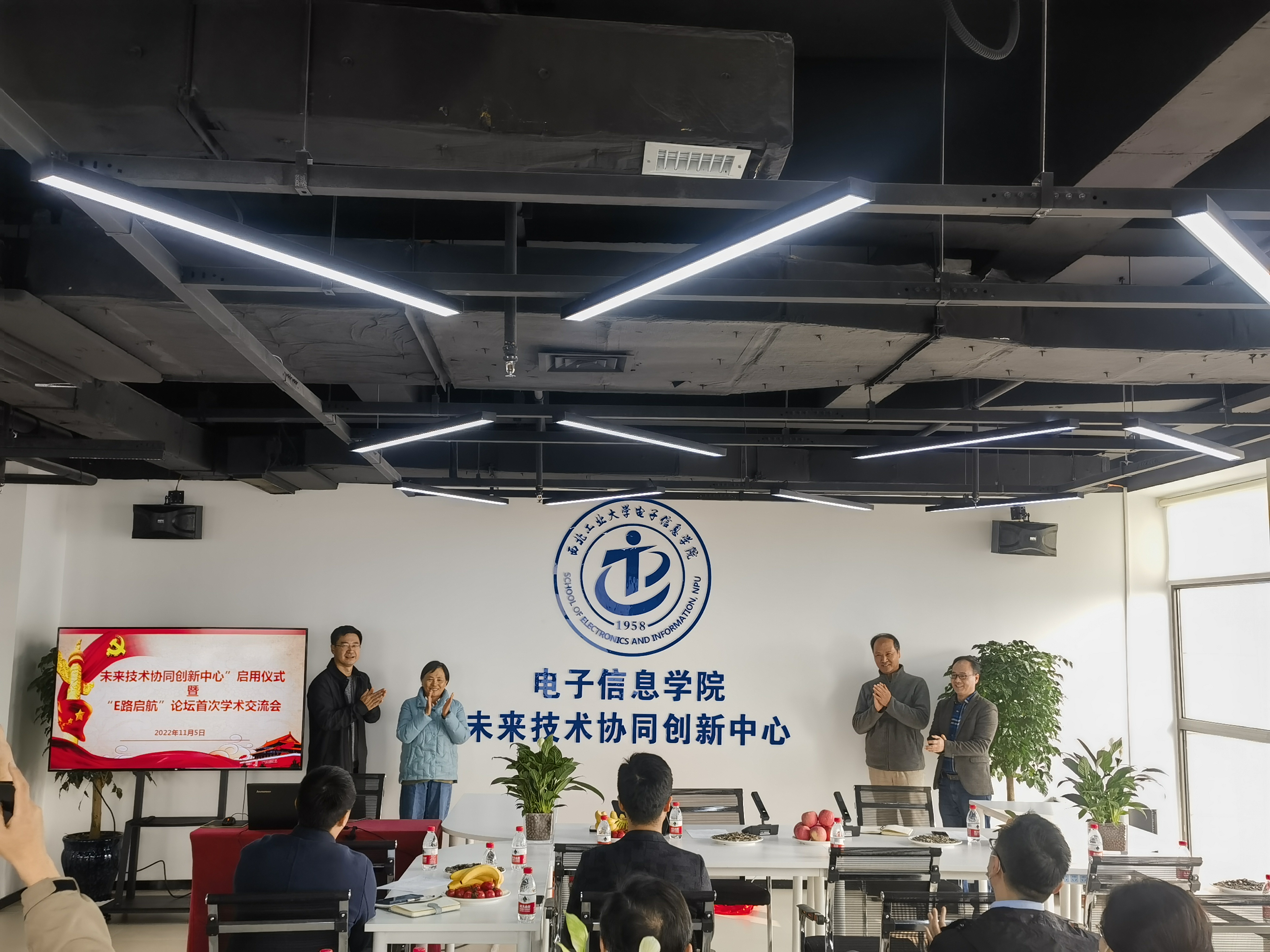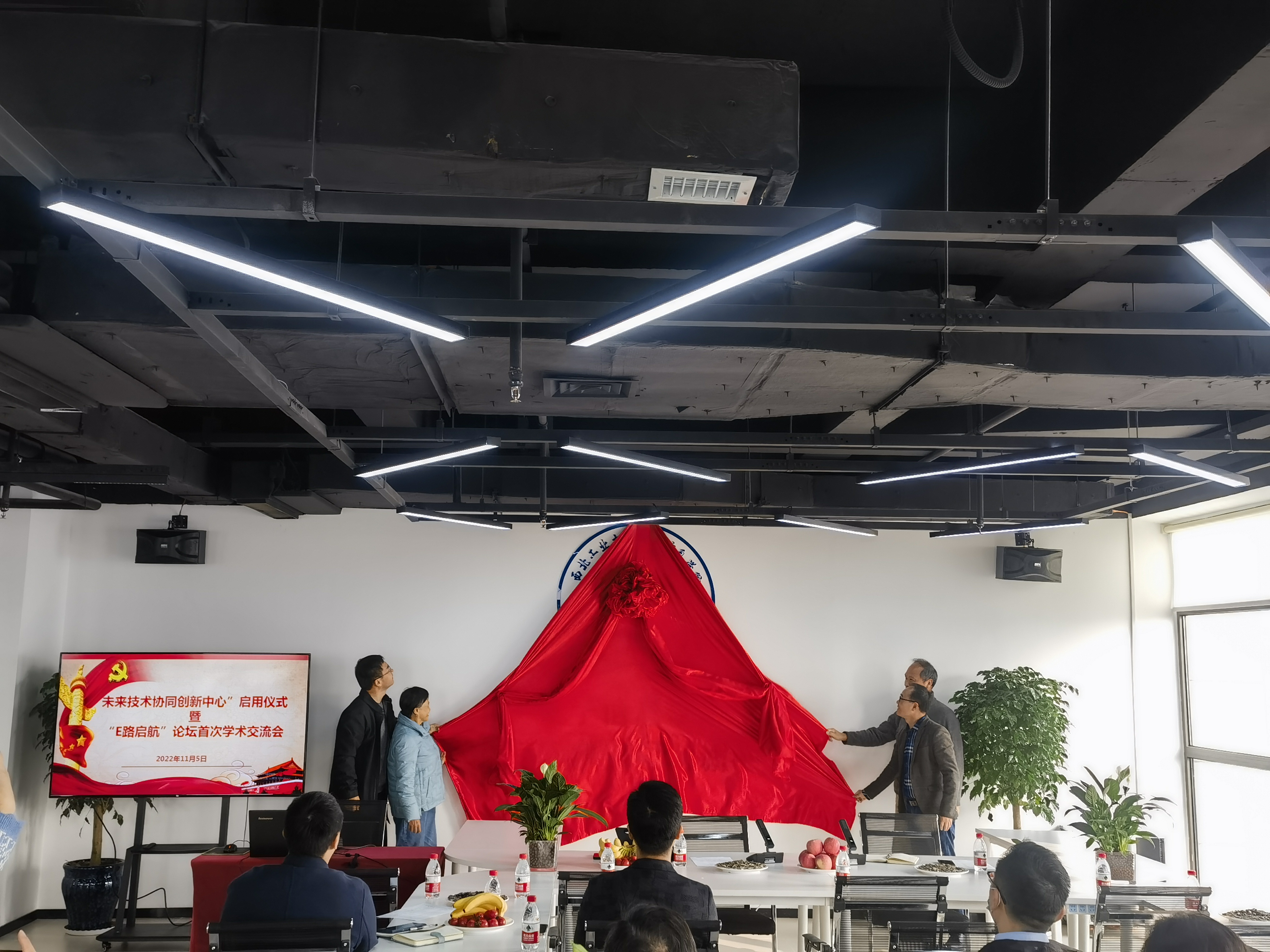 最后,侯俊、王伶、高晓光教授和廉保旺教授共同为“未来技术协同创新中心”启用揭牌,现场掌声不断。