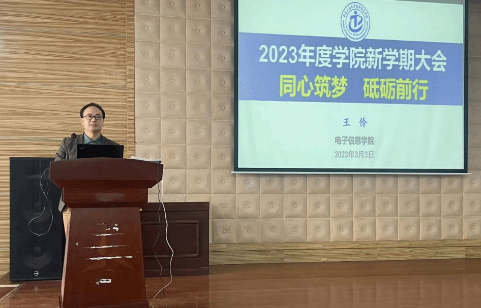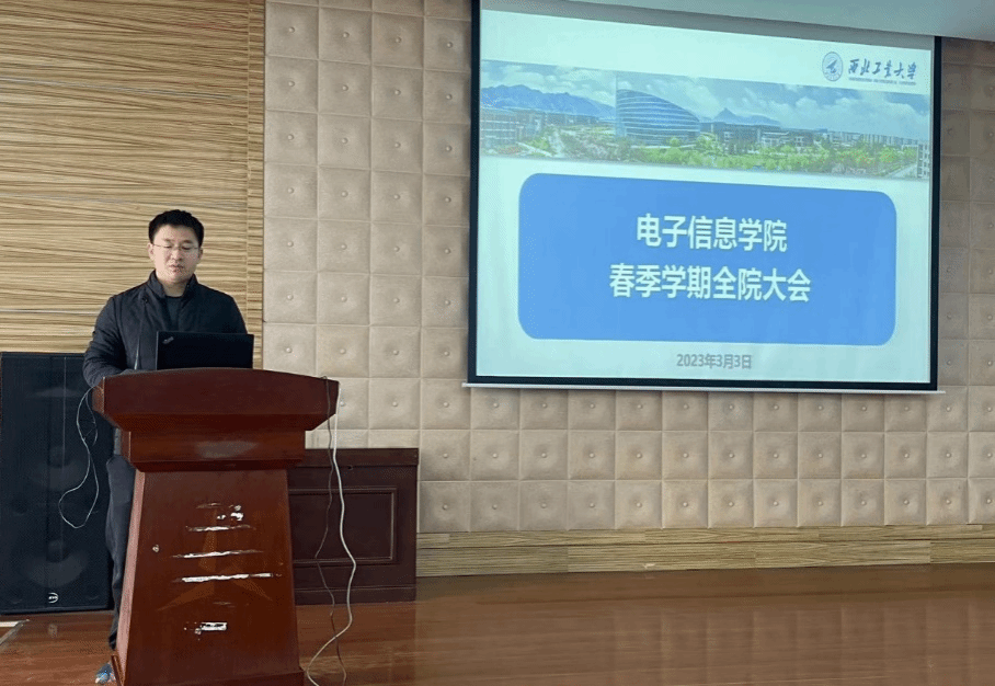 在8、9院报告厅举行春季学期全院大会。学院领导班子及全院教职工参加大会。会议由党委书记侯俊主持。