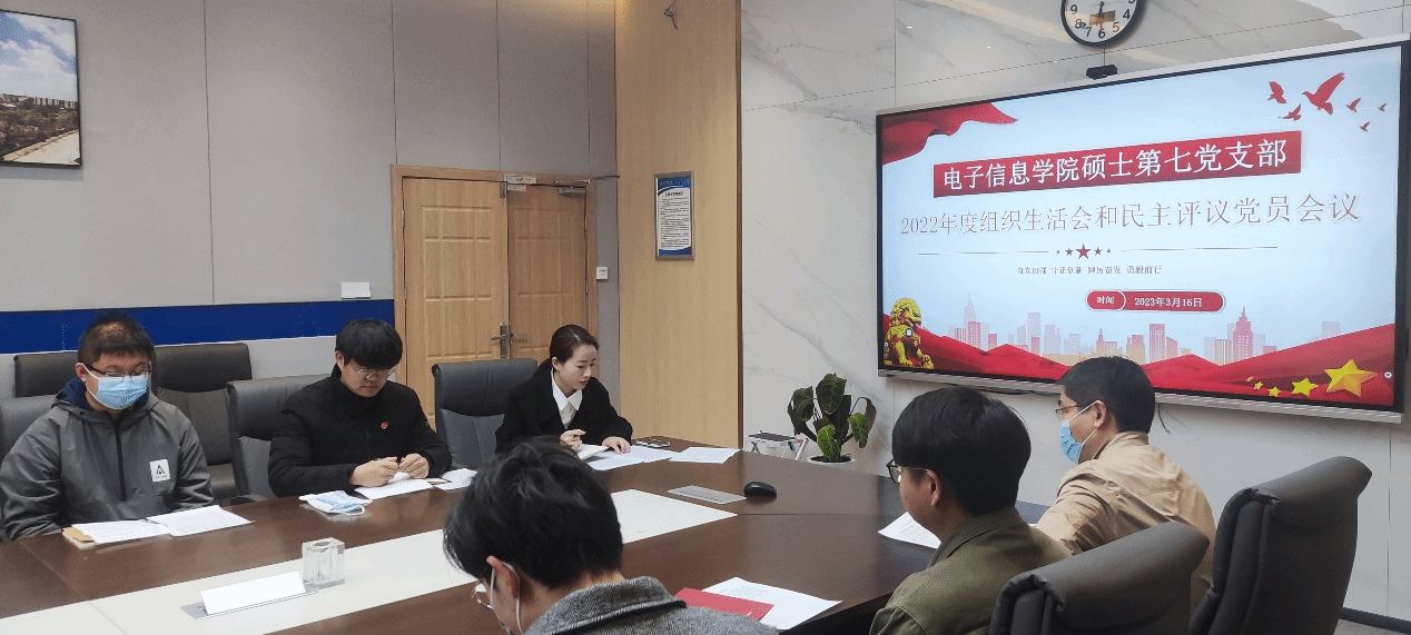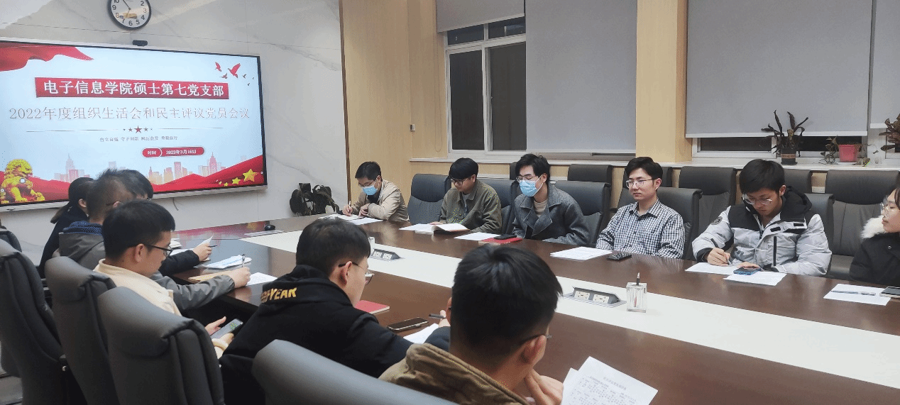 硕士第七党支部在学院楼159会议室召开2022年度组织生活会,开展民主评议党员工作。会议由支部书记于琪同志主持,学院党委委员万国宾列席会议。