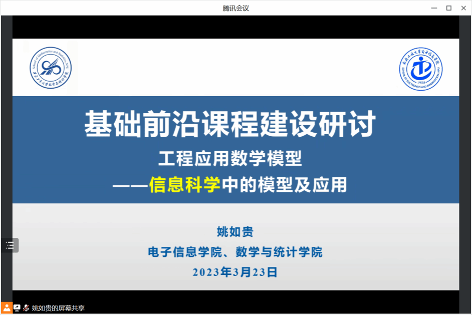 与数学与统计学院联合召开基础前沿课程《工程应用数学模型——信息科学中的模型及应用》建设研讨会议。数学类基础交叉前沿课程负责人、《工程应用数学模型》课程群负责人、《工程应用数学模型——信息科学中的模型及应用》课程负责人及授课教师等参加了会议。会议由sm调教