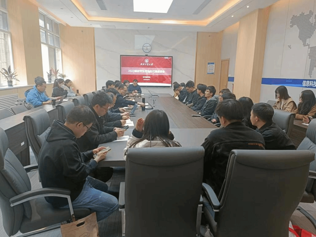 在119会议室召开2023届研究生毕业生代表座谈会。院长王伶,党委书记侯俊、党委副书记高敏、副院长姚如贵、高永胜、各系主任、研究生教学秘书和毕业年级辅导员出席会议。会议由高敏主持。