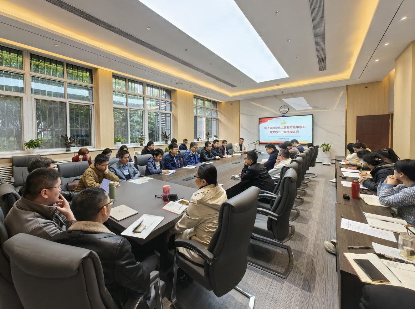 邀请学校宣讲团成员、科学技术研究院马炳和院长,以“科技工作高质量发展行动计划”为题,开展主题教育集中学习暨党的二十大精神宣讲。本次宣讲在学院楼119会议室召开,由学院党委书记侯俊主持。学院党委理论学习中心组成员、各教工党支部书记及支委、教师代表、学院科研办公室人员共计40余人参加了宣讲会。
